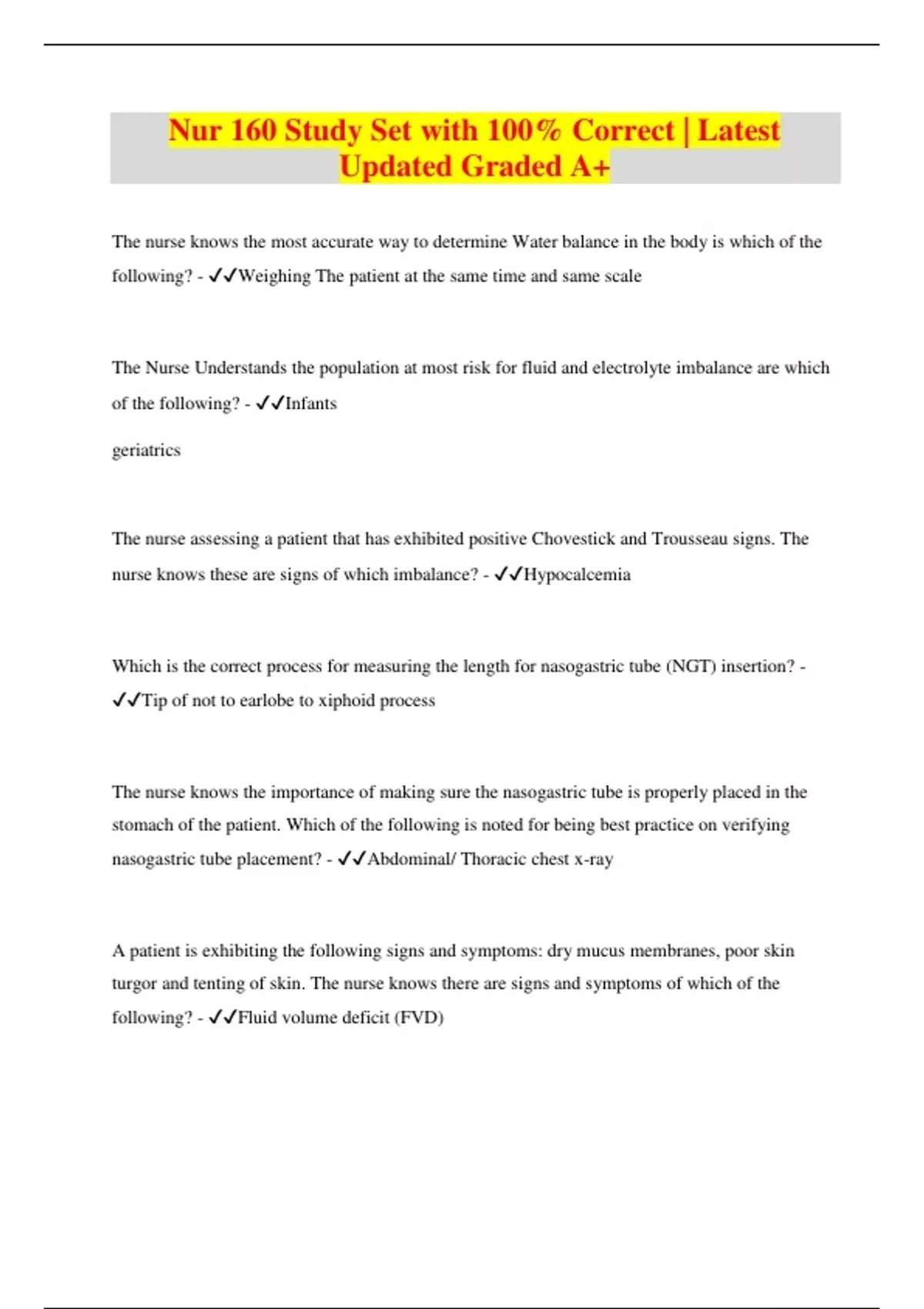 Nur 160 Study Set with 100% Correct | Latest Updated Graded A+