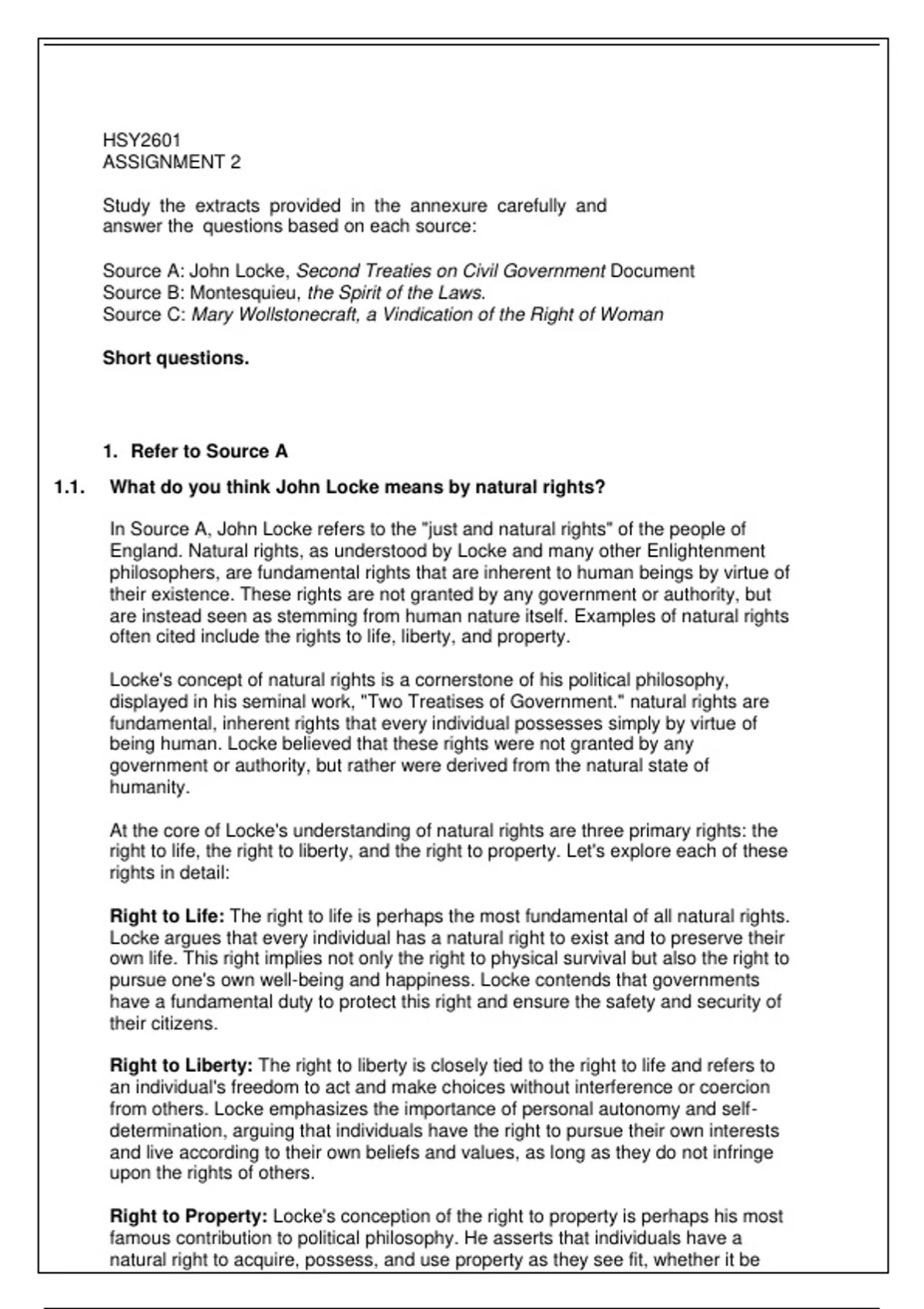 1.1. What do you think John Locke means by natural rights?