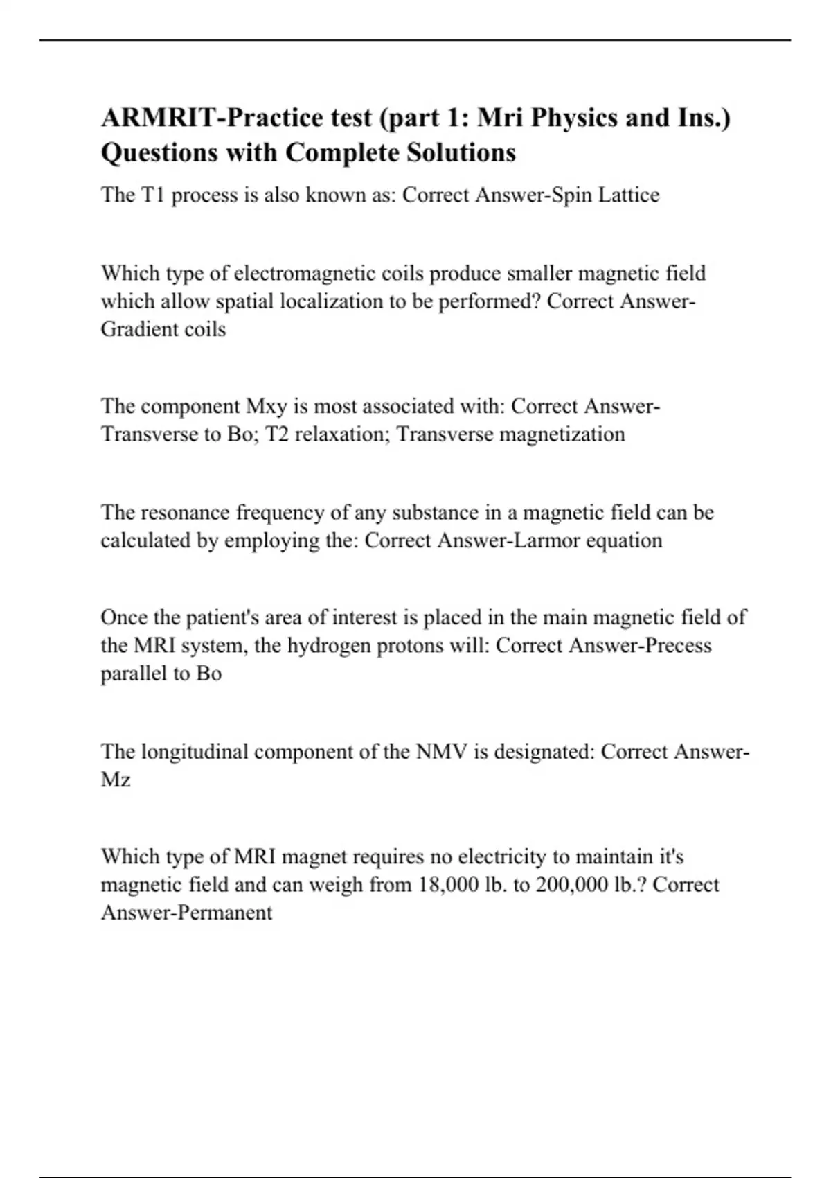 ARMRIT-Practice test (part 1: Mri Physics and Ins.) Questions with Complete Solutions