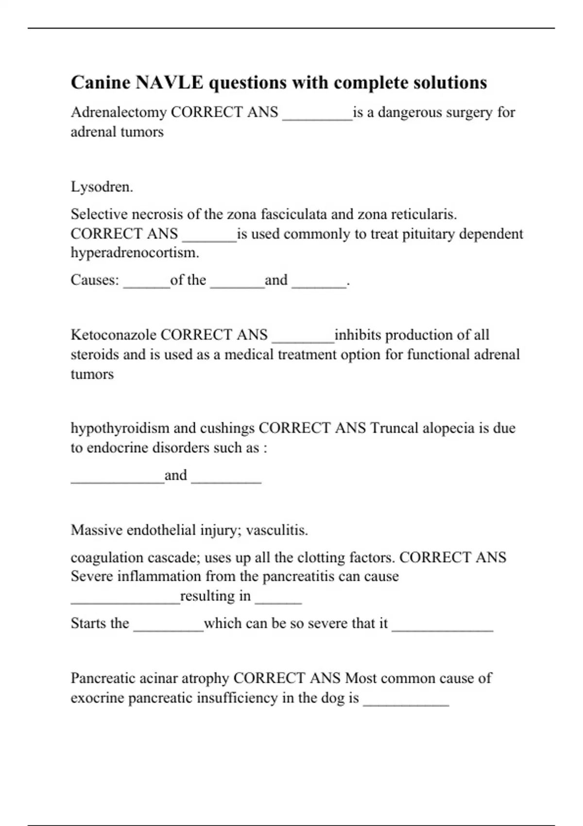Canine NAVLE questions with complete solutions.