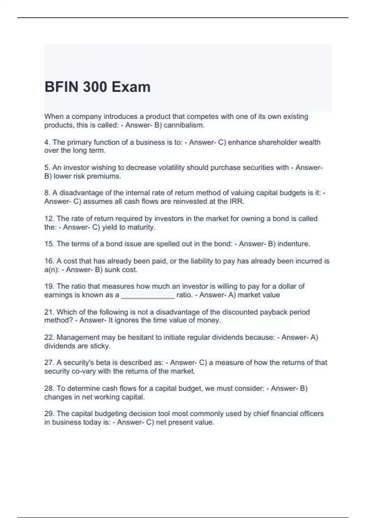 BFIN 300 Exam with correct Answers 2024