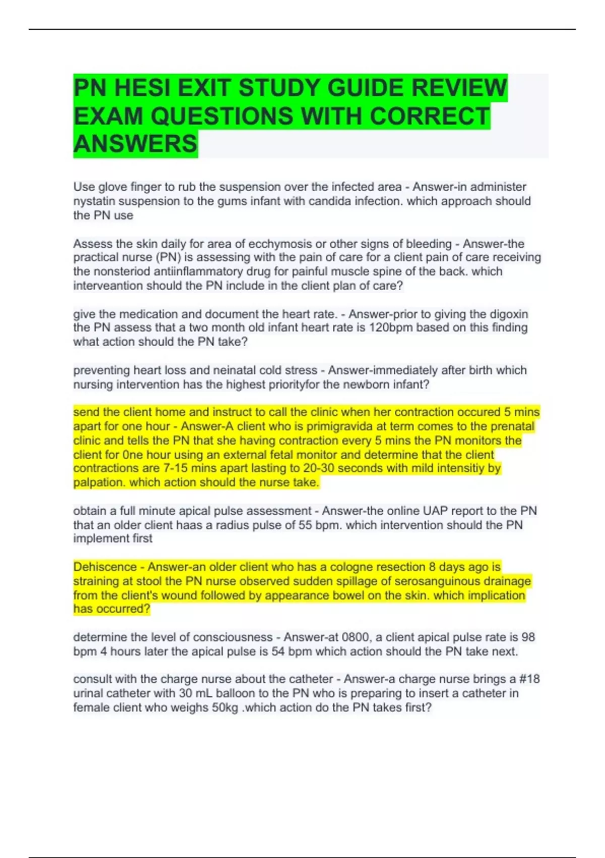 PN HESI EXIT STUDY GUIDE REVIEW EXAM QUESTIONS WITH CORRECT ANSWERS