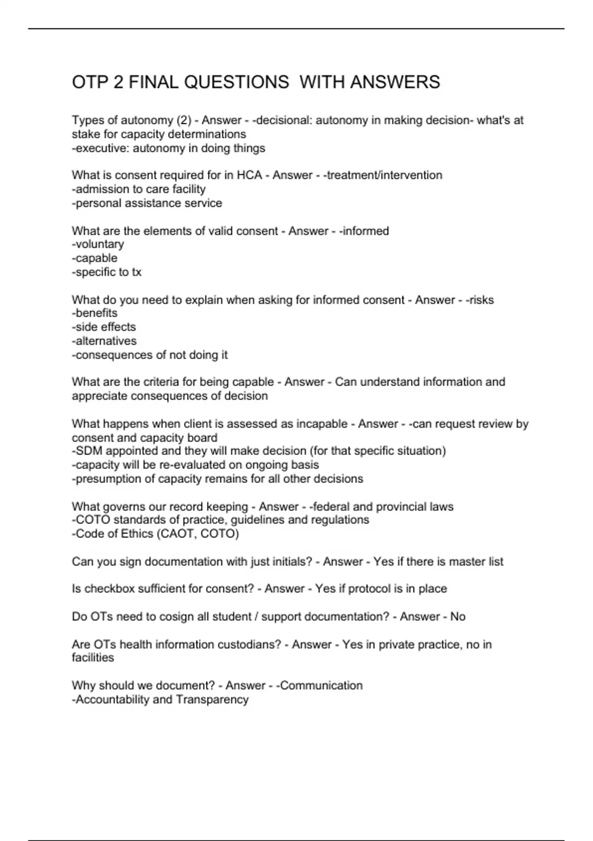 OTP 2 FINAL QUESTIONS WITH ANSWERS