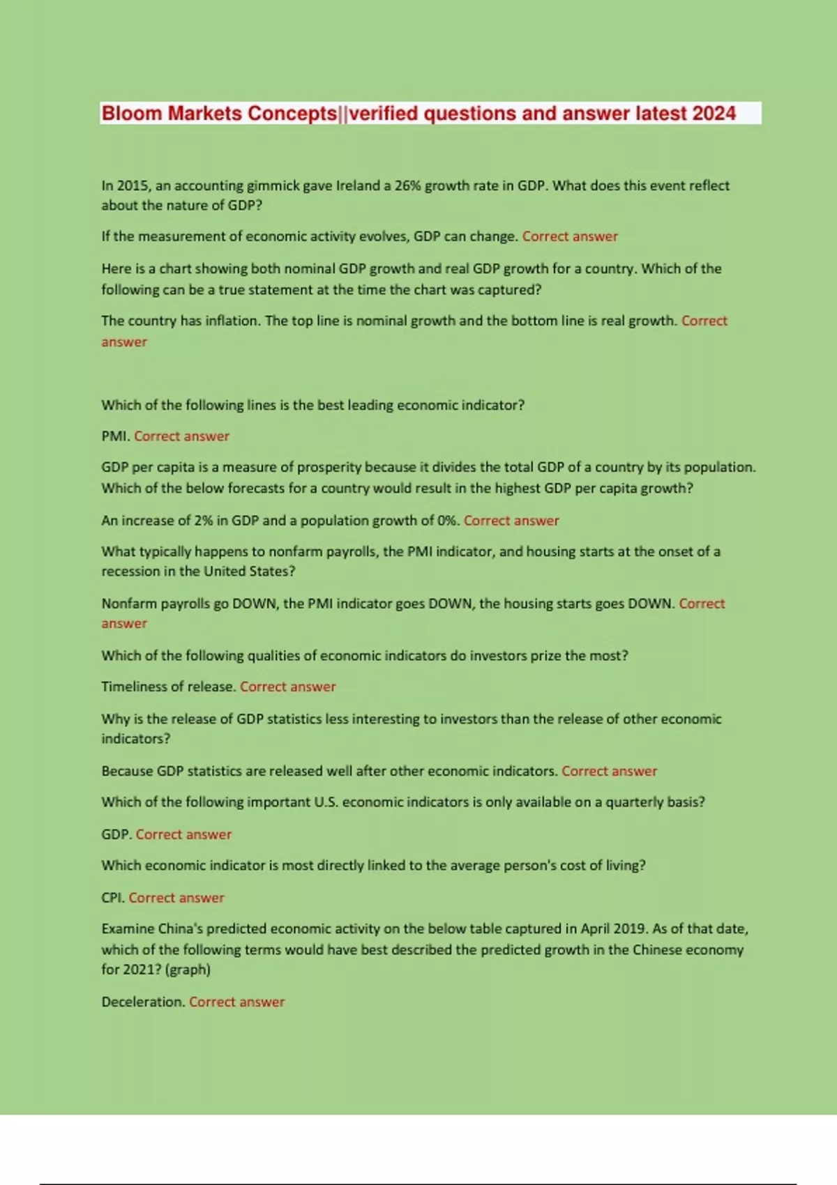 Bloom Markets Concepts||verified questions and answer latest 2024