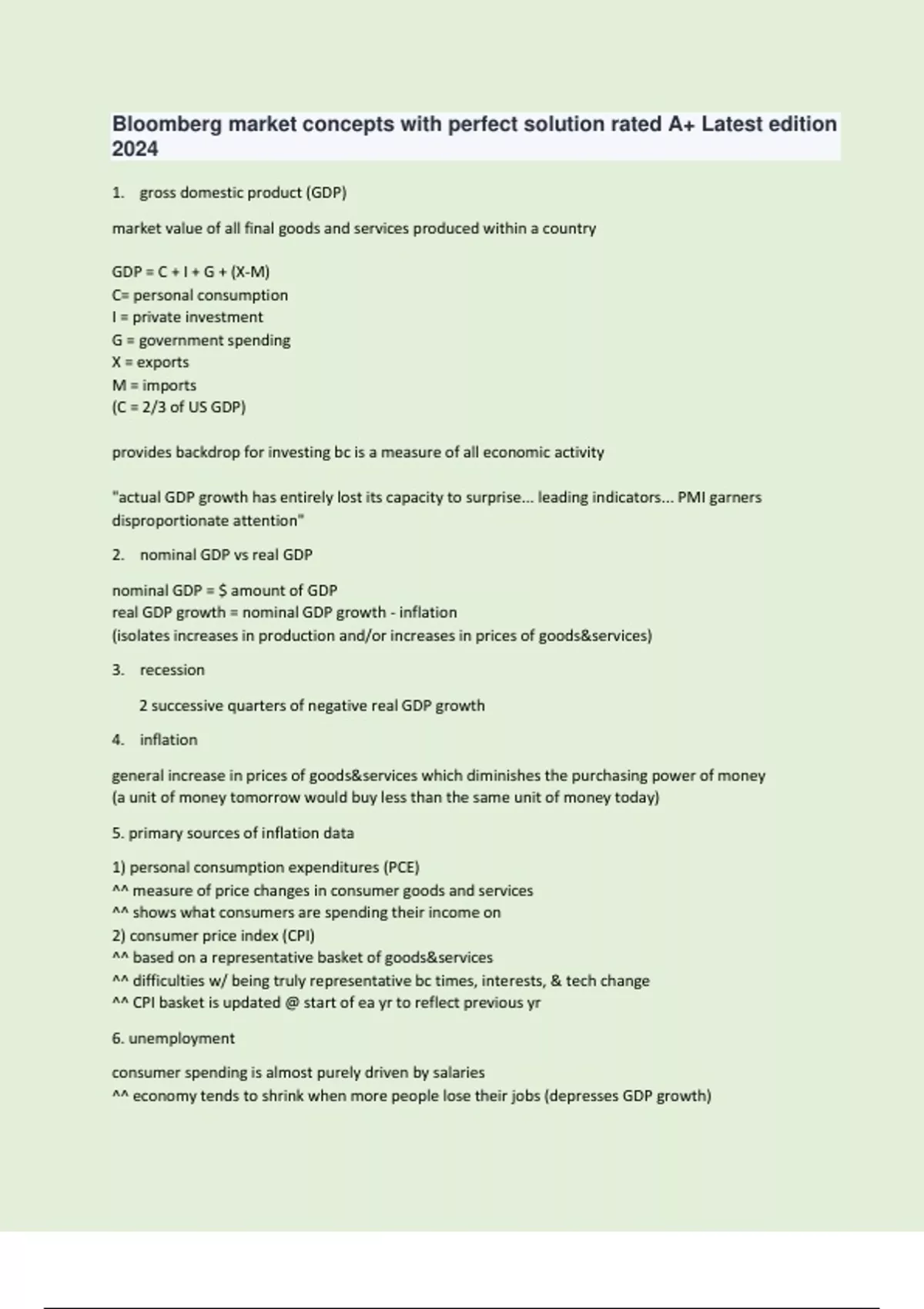 Bloomberg market concepts with perfect solution rated A+ Latest edition 2024