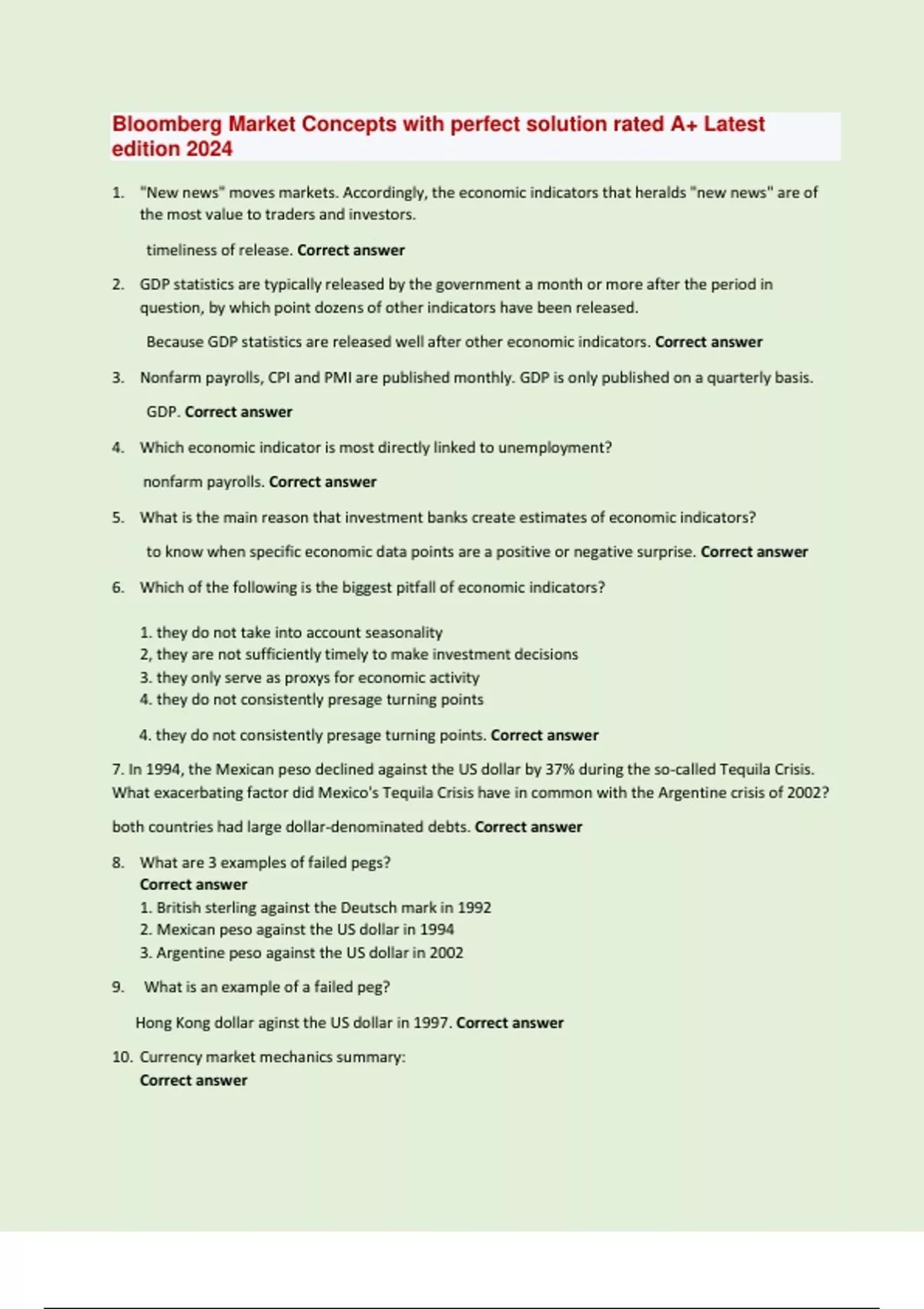 Bloomberg Market Concepts with perfect solution rated A+ Latest edition 2024
