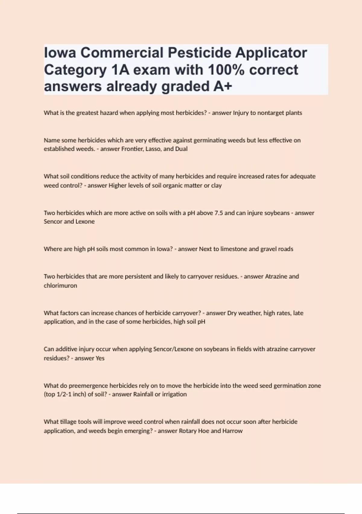 Iowa Commercial Pesticide Applicator Category 1A exam with 100% correct answers