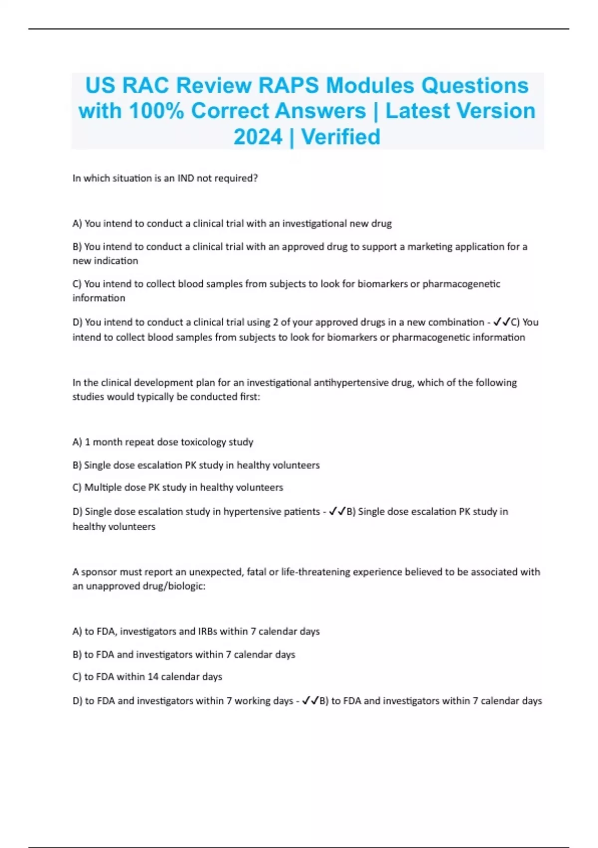 US RAC Review RAPS Modules Questions with 100% Correct Answers | Latest Version 2024 | Verified
