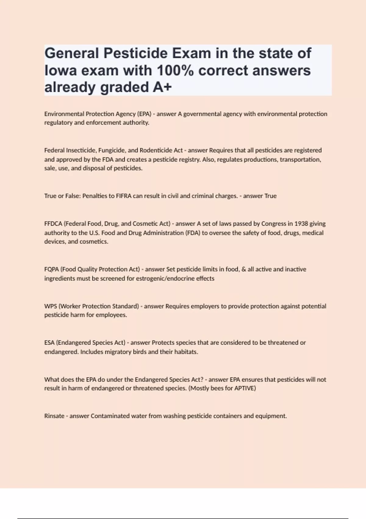 General Pesticide Exam in the state of Iowa exam with 100% correct answers already graded A+