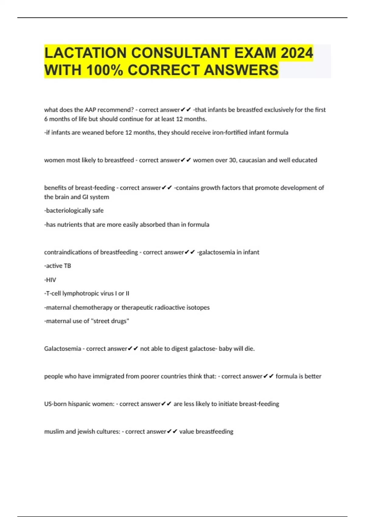 LACTATION CONSULTANT EXAM 2024 WITH 100% CORRECT ANSWERS