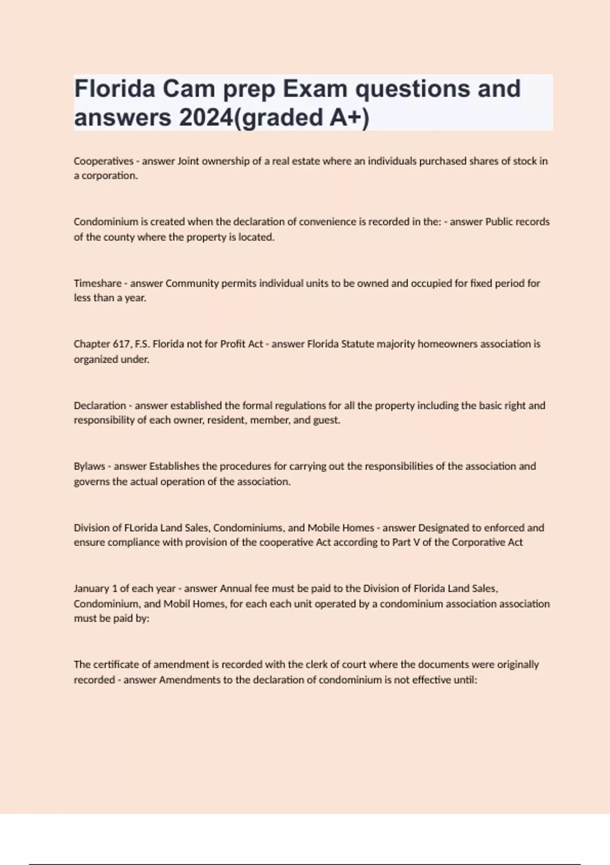 Florida Cam prep Exam questions and answers 2024(graded A+)