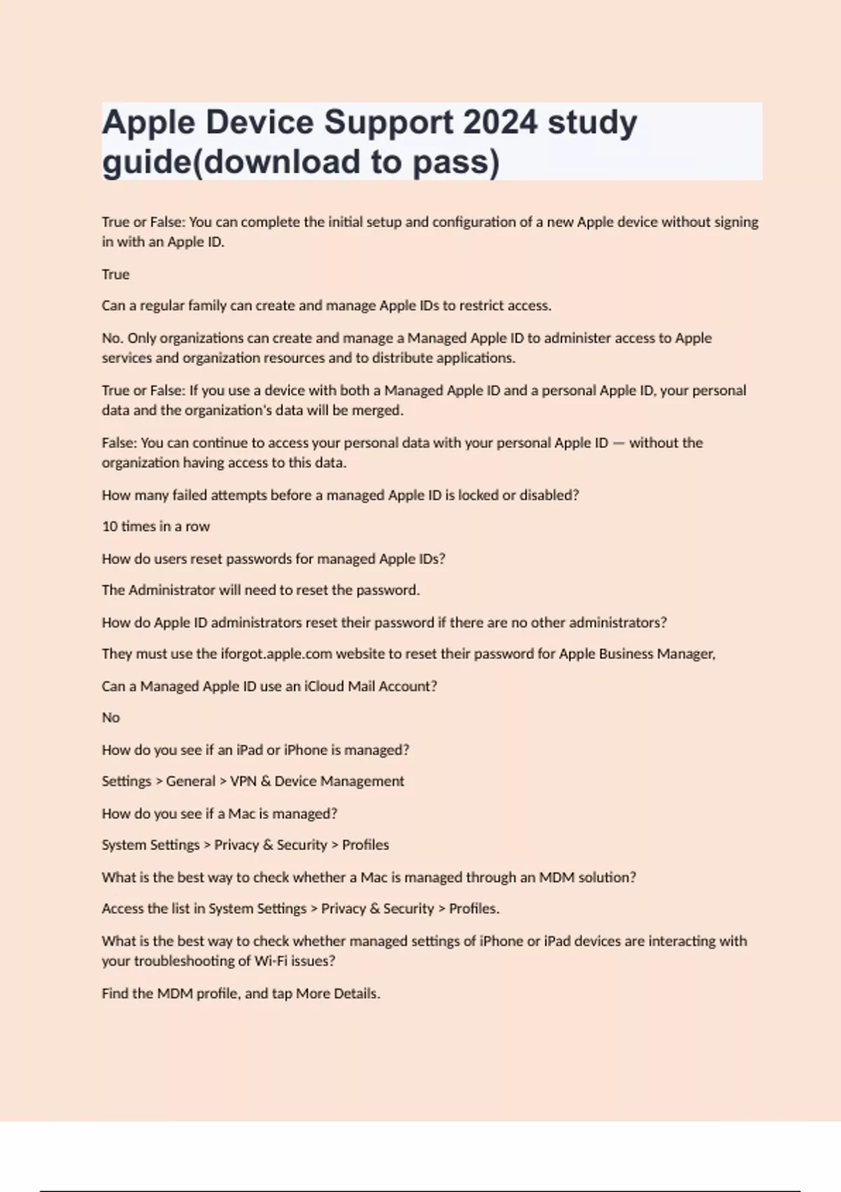 Apple Device Support 2024 study guide(download to pass).