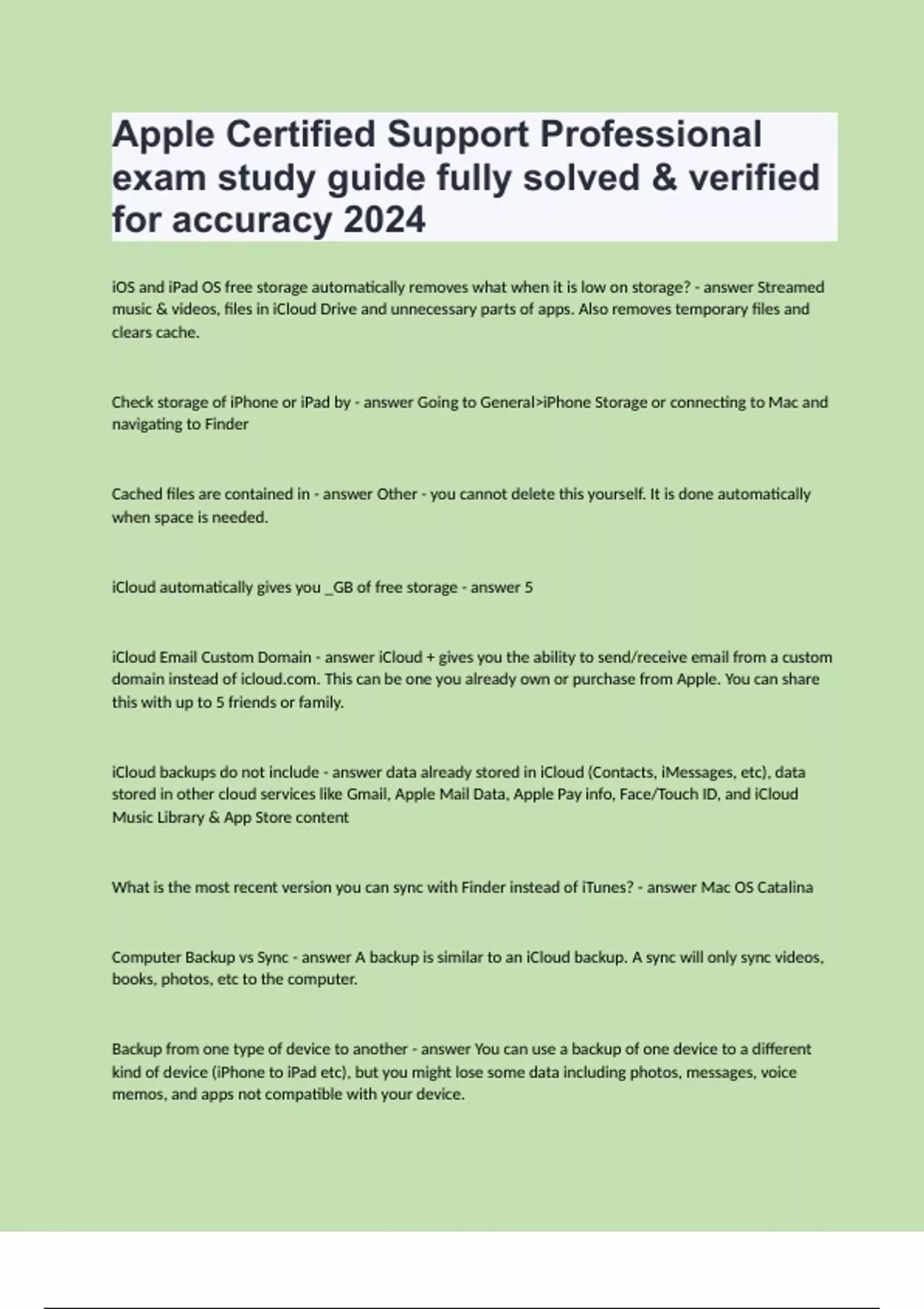 Apple Certified Support Professional exam study guide fully solved & verified for accuracy 2024.