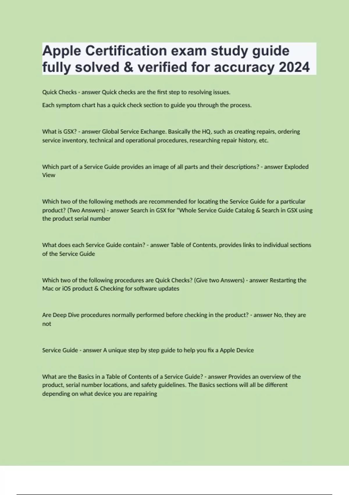 Apple Certification exam study guide fully solved & verified for accuracy 2024