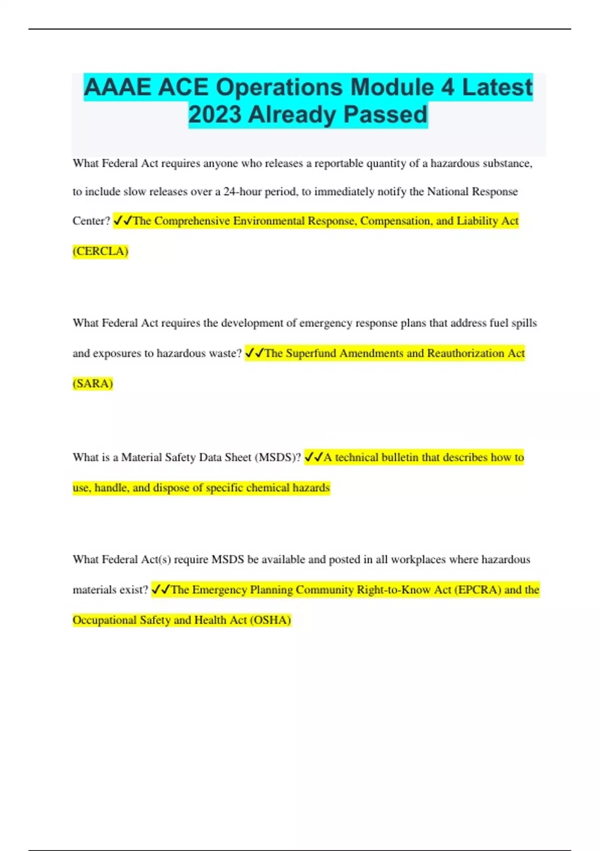 AAAE ACE Operations Module 4 Latest 2023 Already Passed