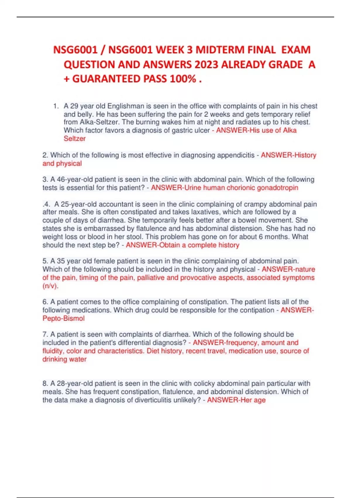 NSG6001 / NSG6001 WEEK 3 MIDTERM FINAL EXAM QUESTION AND ANSWERS 2023 ALREADY GRADE A + GUARANTEED PASS 100%