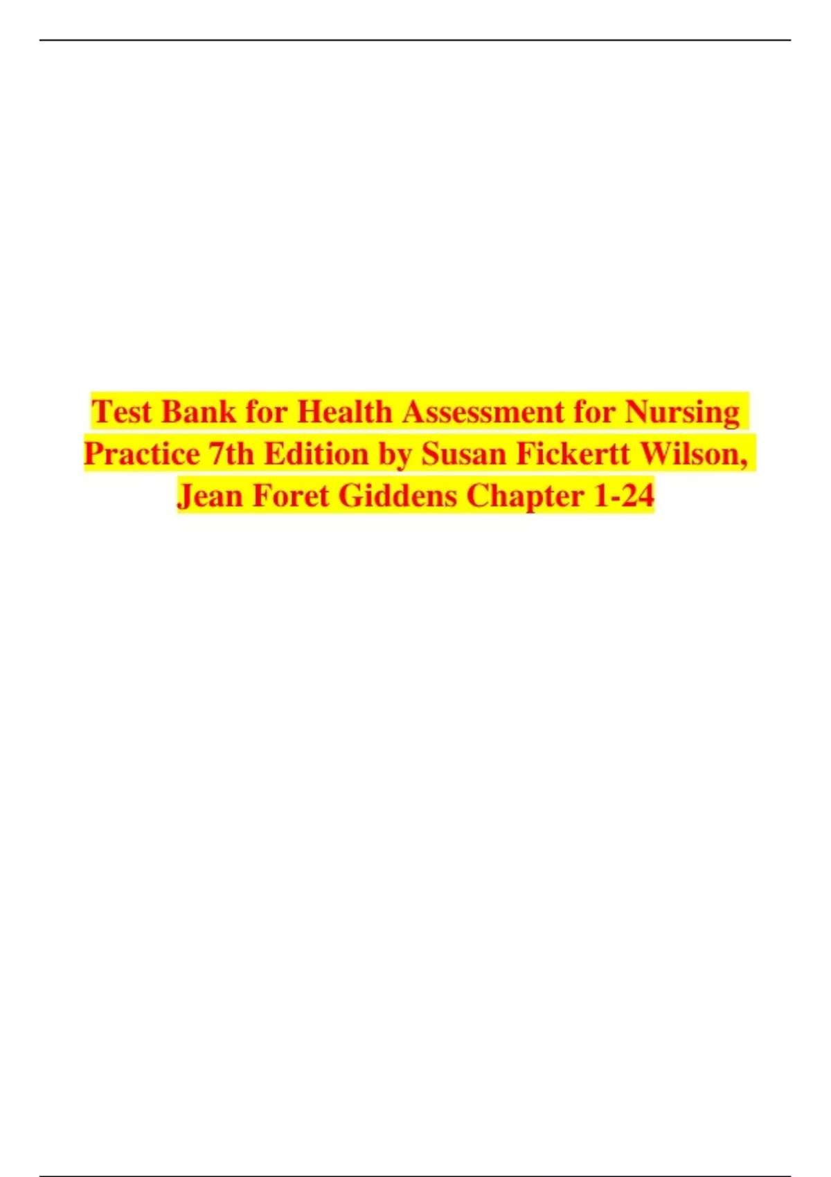 Test Bank for Health Assessment for Nursing Practice 7th Edition by Susan Fickertt Wilson, Jean Foret Giddens Chapter 1-24