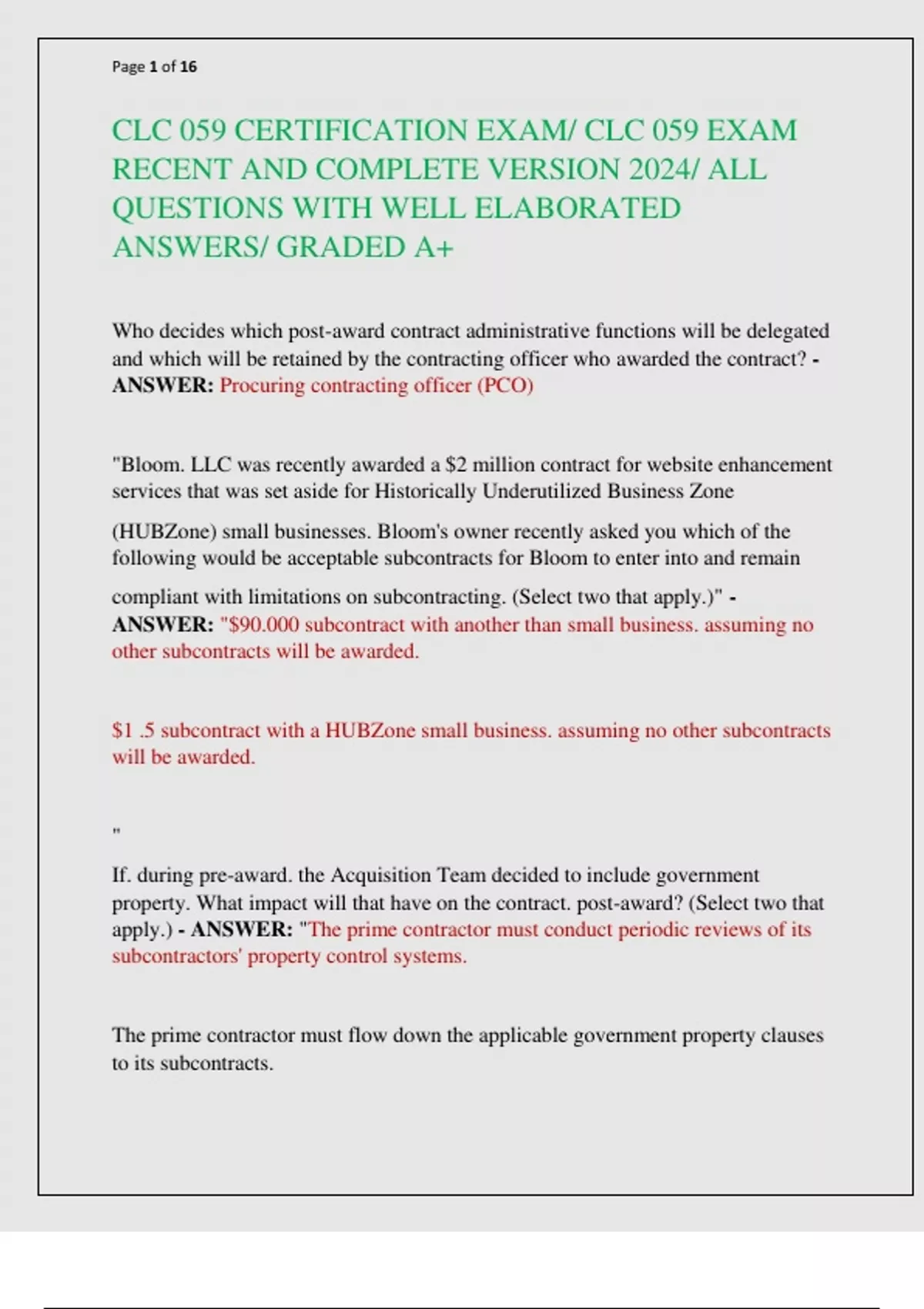 CLC 059 CERTIFICATION EXAM/ CLC 059 EXAM RECENT AND COMPLETE VERSION 2024/ ALL QUESTIONS WITH WELL ELABORATED ANSWERS/ GRADED A+