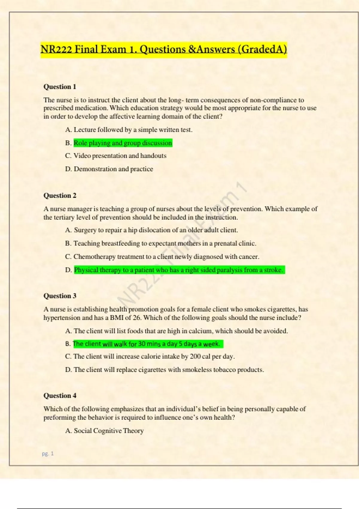 NR222 Final Exam 1. Questions &Answers (GradedA) Chamberlain College of Nursing