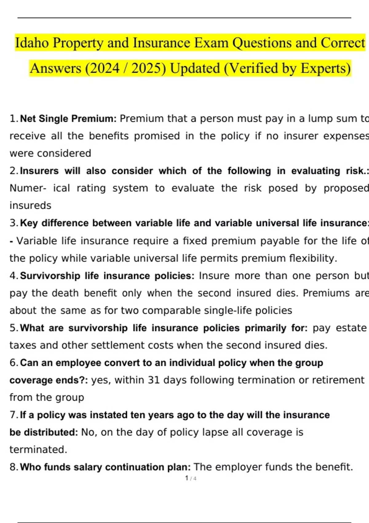 Idaho Property and Casualty Insurance 2024 Exam Questions and Answers (Verified Answers)