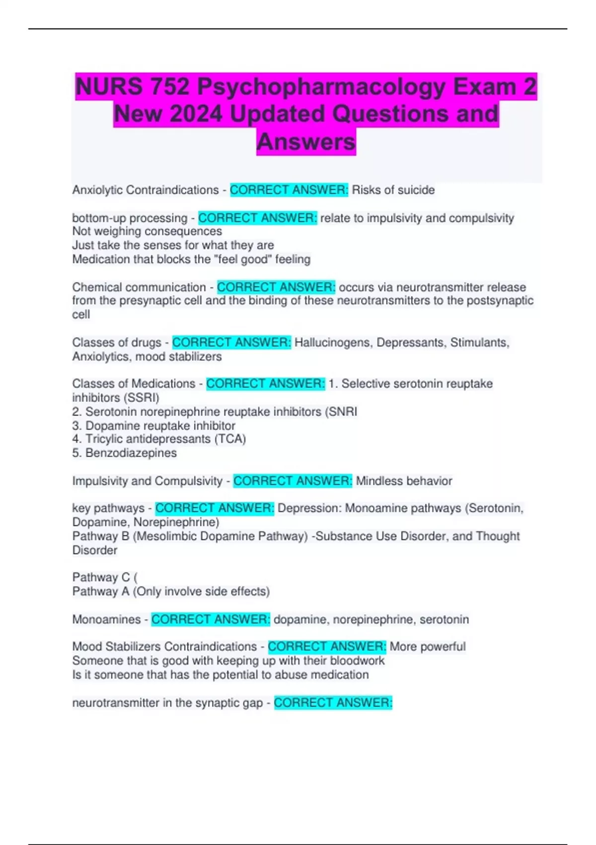 NURS 752 Psychopharmacology Exam 2 New 2024 Updated Questions and Answers
