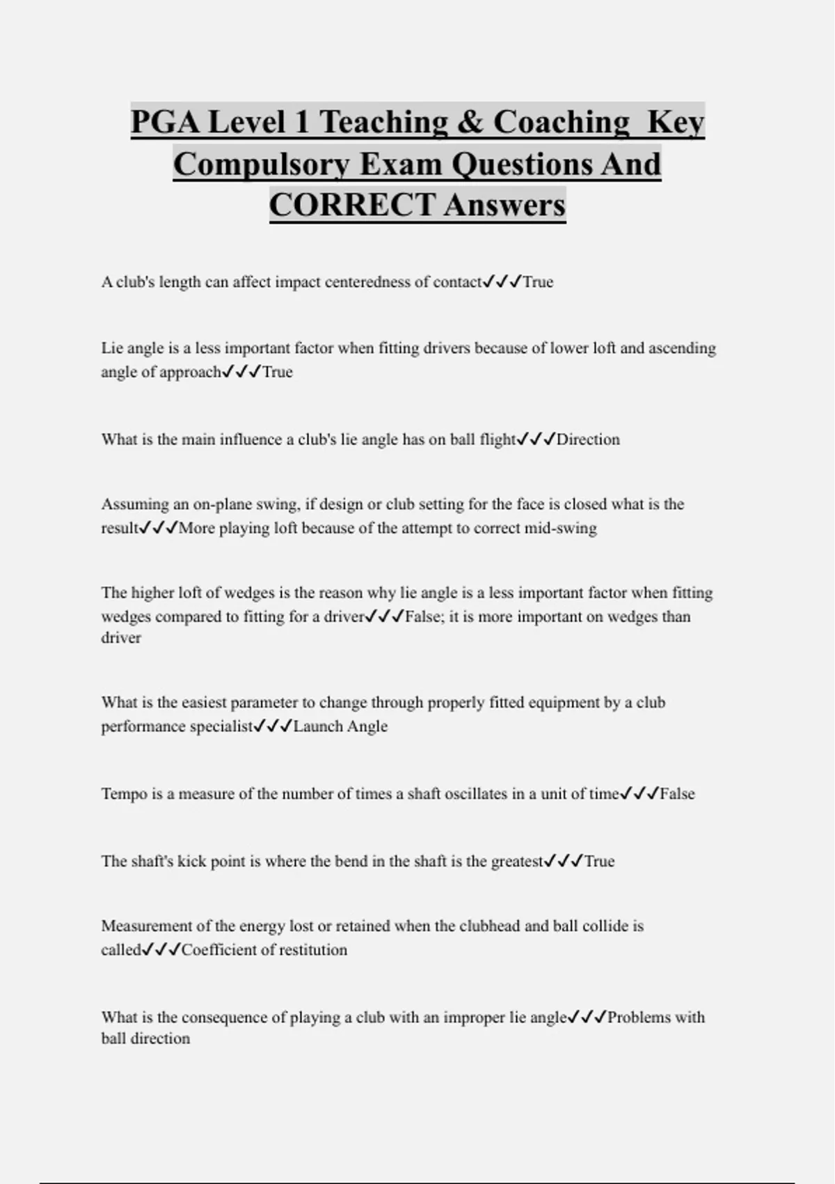 PGA Level 1 Teaching & Coaching Key Compulsory Exam Questions And CORRECT Answers