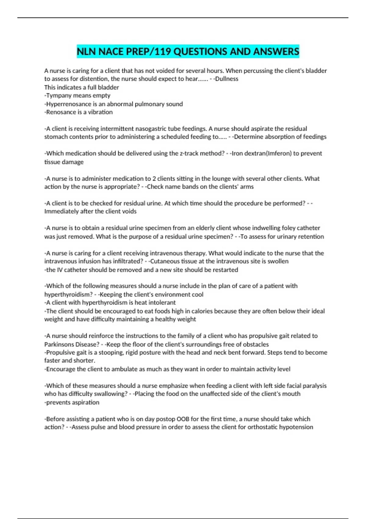 NLN NACE PREP/119 QUESTIONS AND ANSWERS