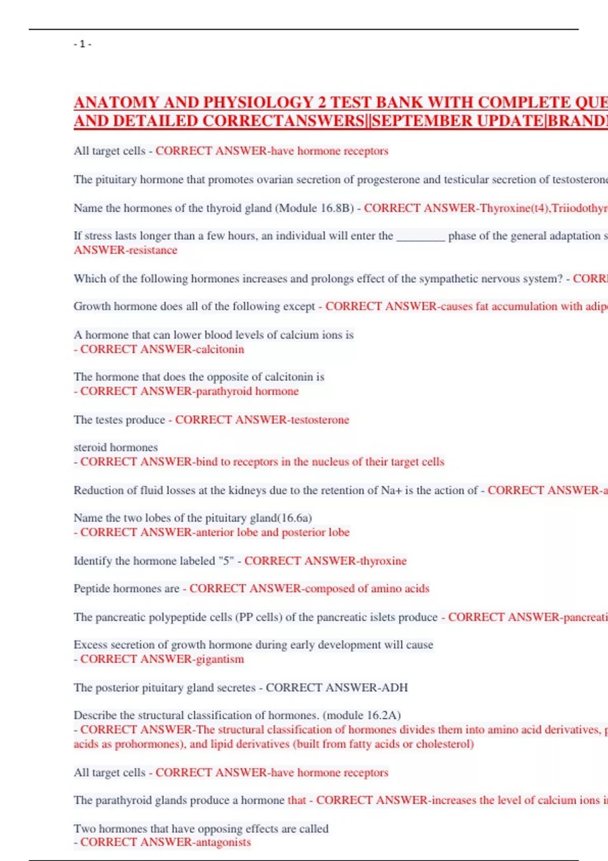 ANATOMY AND PHYSIOLOGY 2 TEST BANK WITH COMPLETE QUESTIONS AND ACTUAL AND DETAILED CORRECTANSWERS||SEPTEMBER UPDATE|BRANDNEW!!!!!!!
