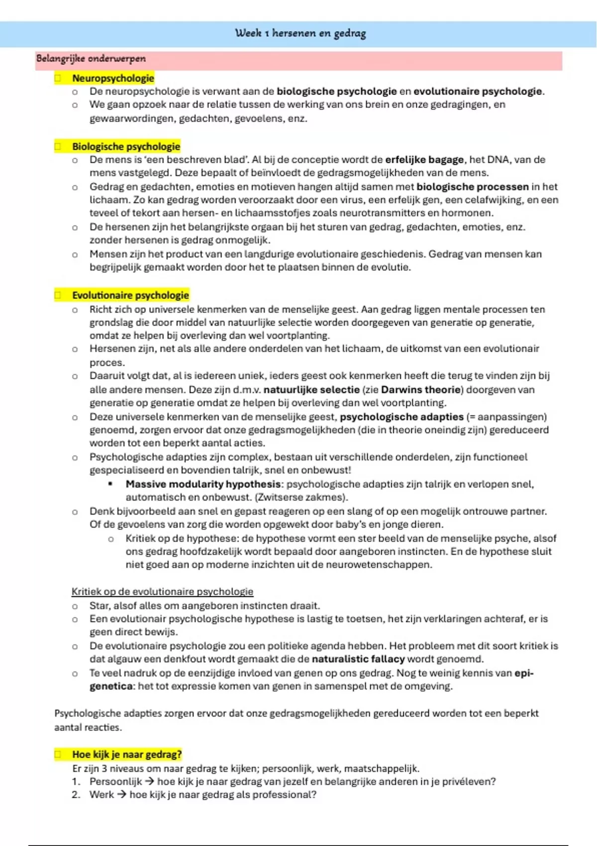 Week 1 hersenen en gedrag