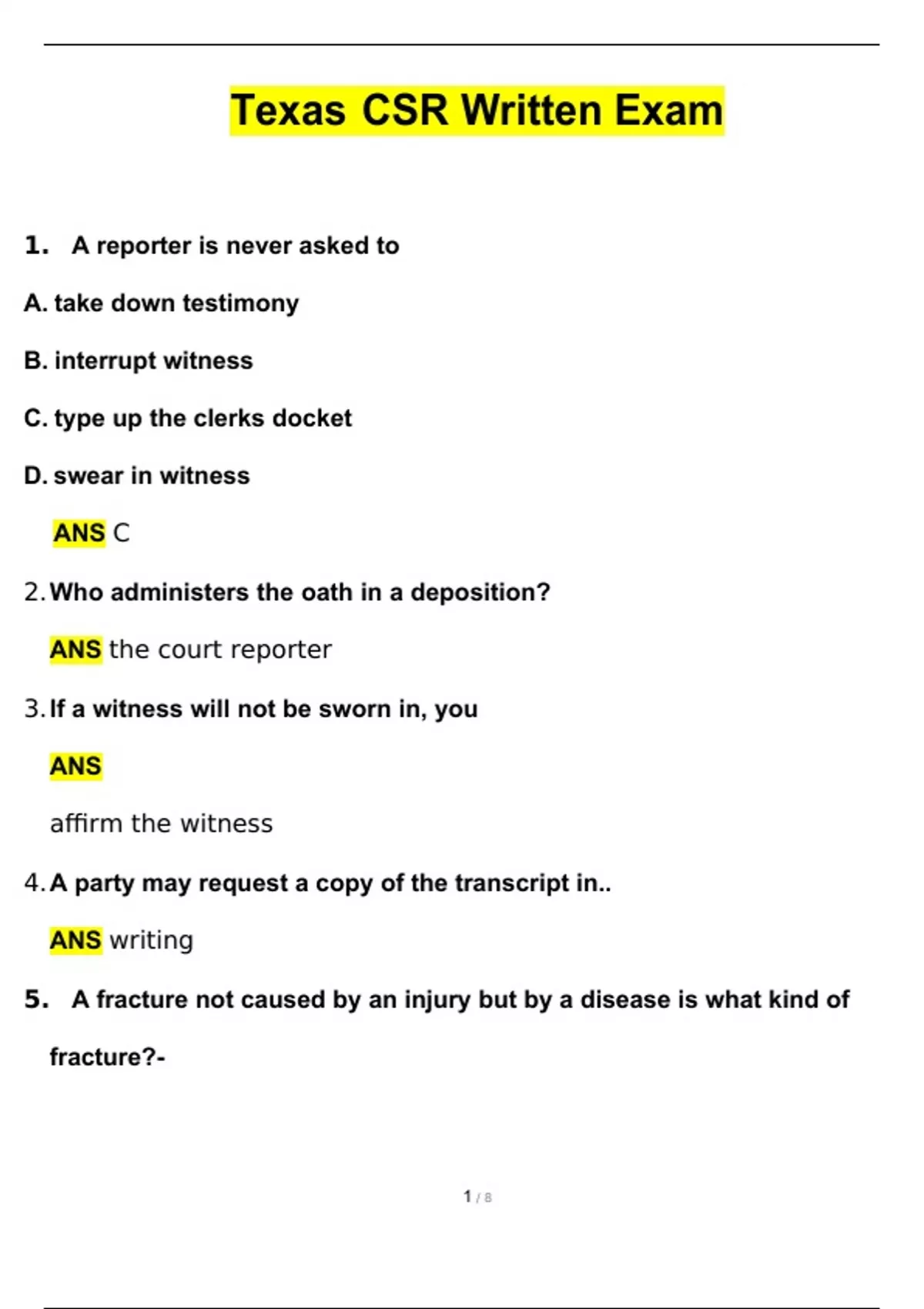 Texas CSR Written Questions and Verified Answers (2024 / 2025)/ A+ GRADE