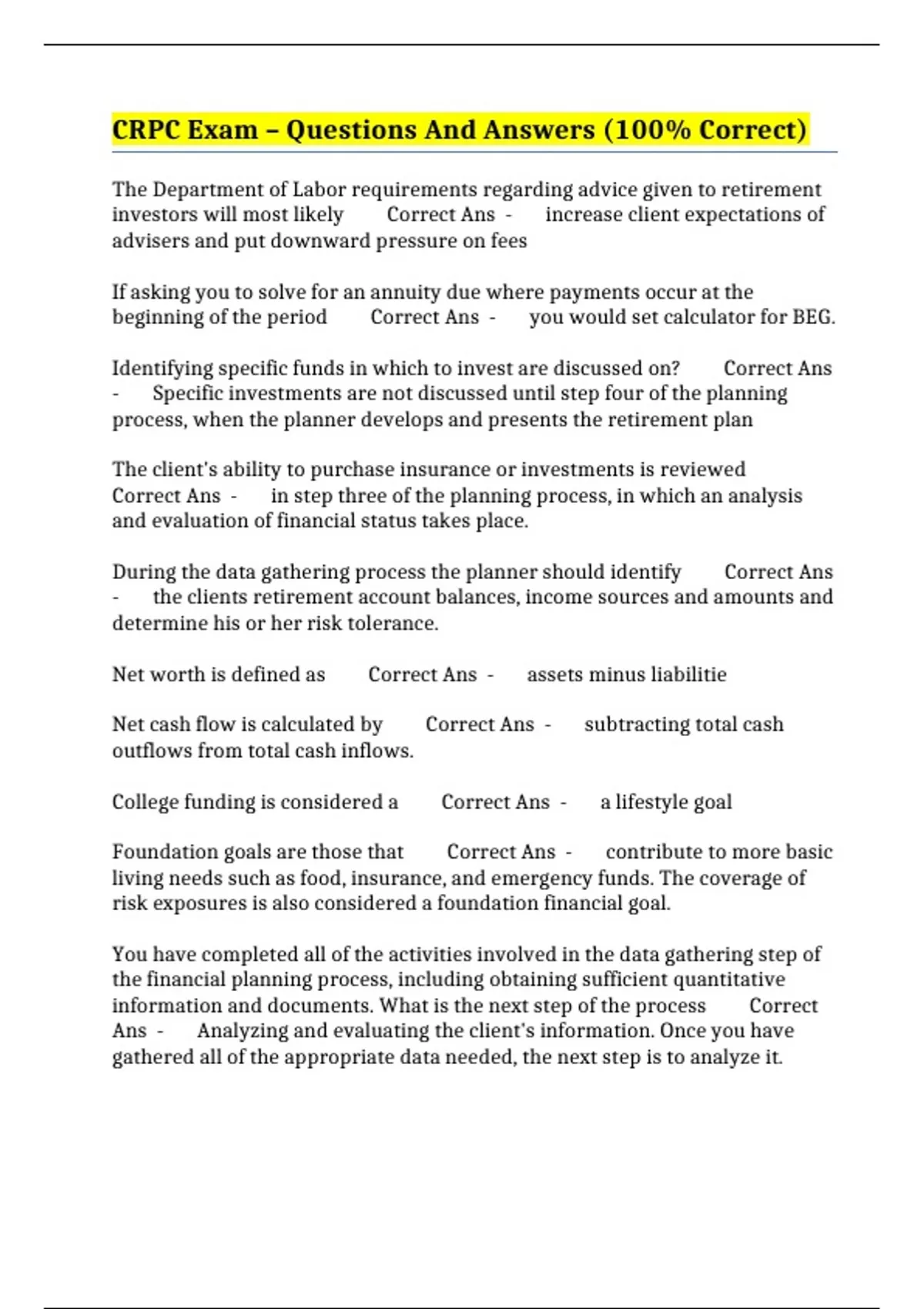 CRPC Exam – Questions And Answers (100% Correct)