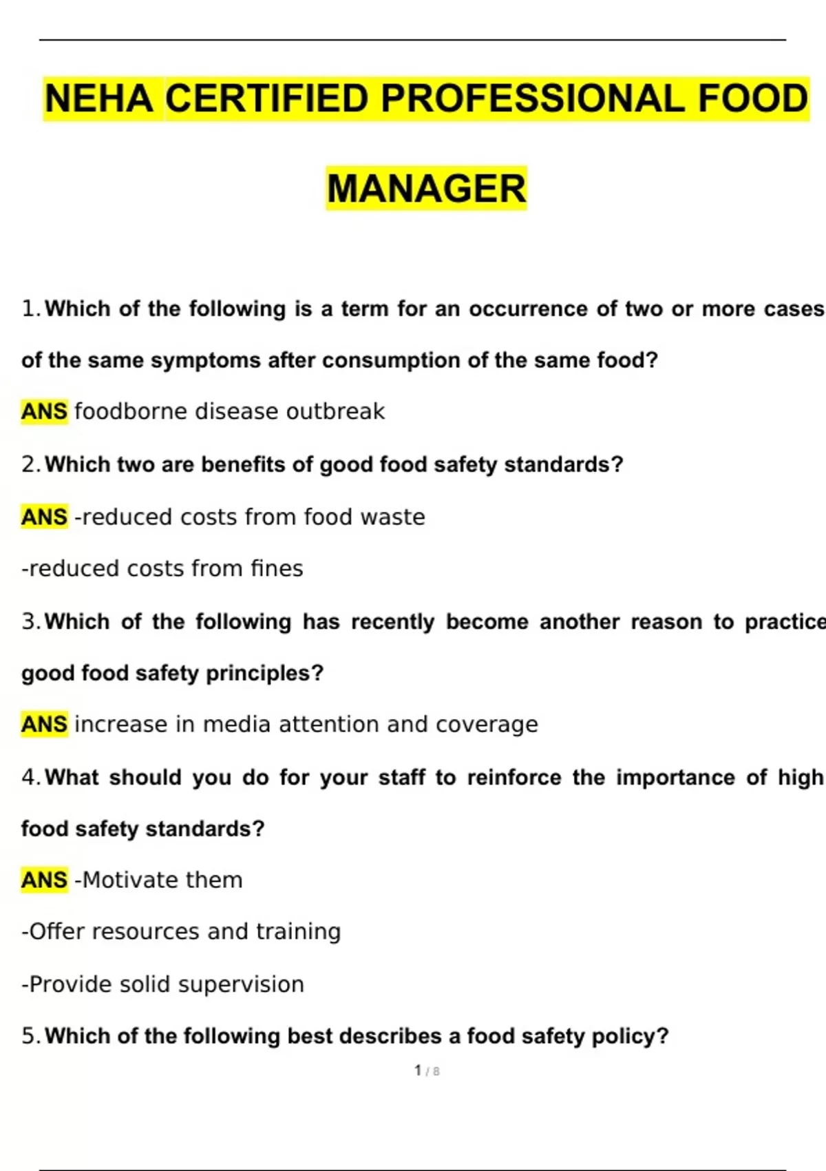 NEHA Certified Professional Food Manager Exam Latest 2024 Questions and Verified Answers (2024 / 2025)/ A+ GRADE