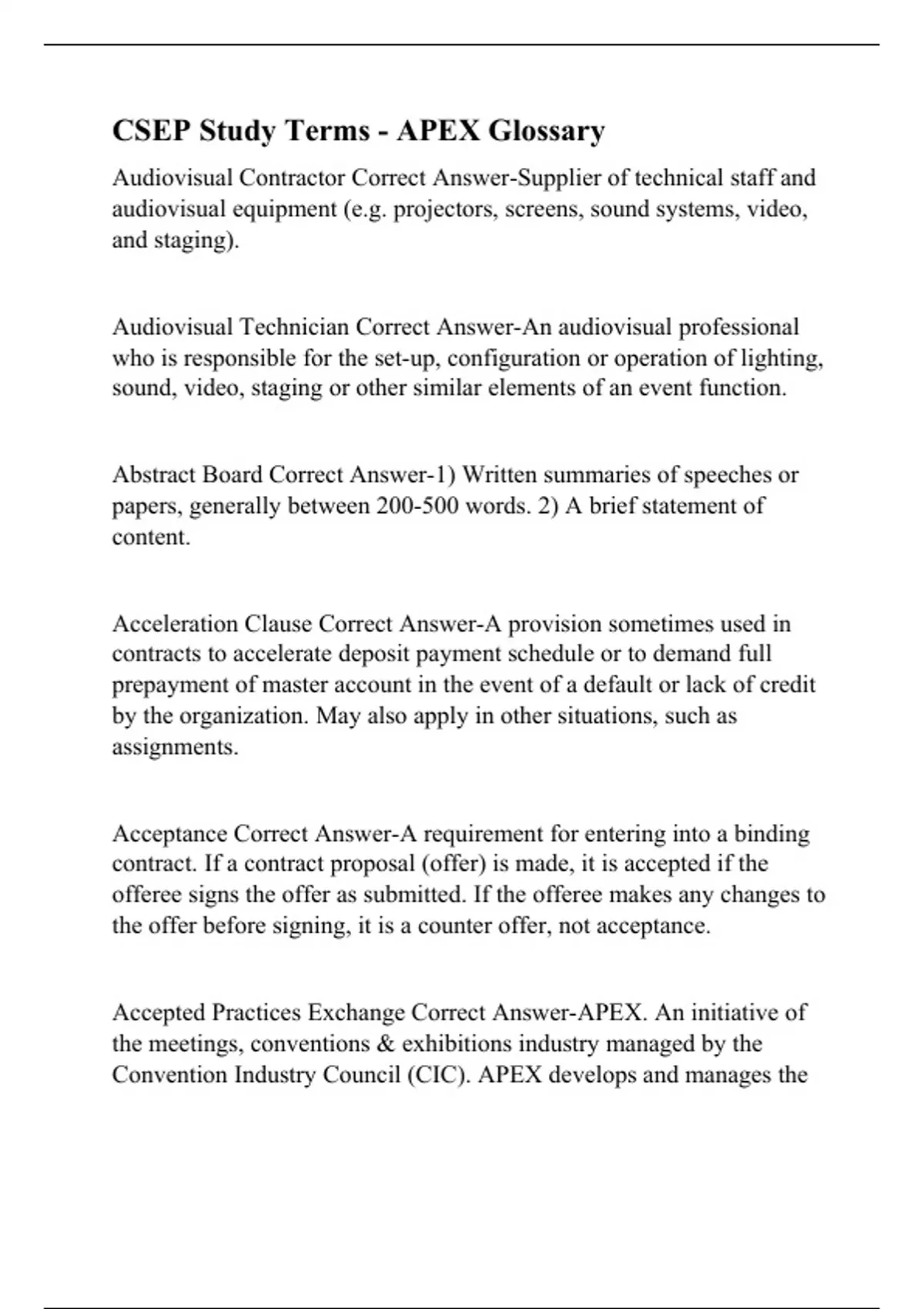 CSEP Study Terms - APEX Glossary Questions With Complete Solutions