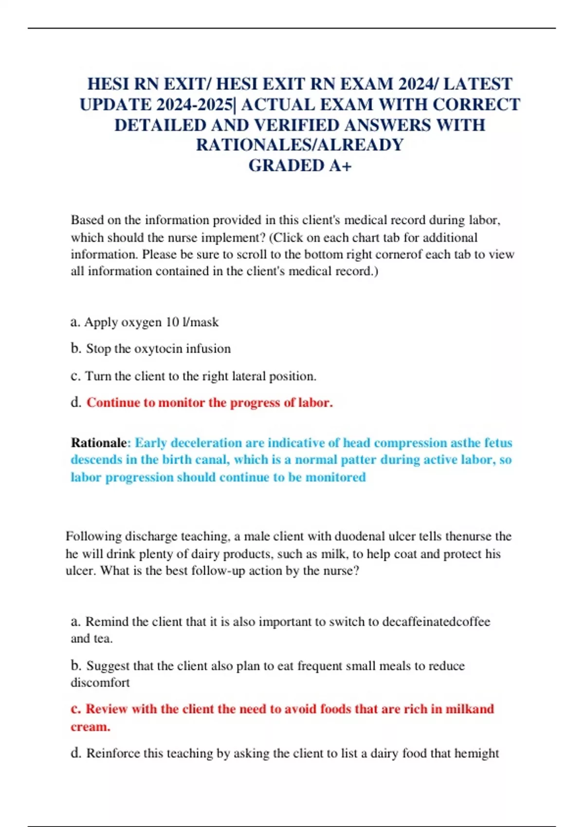 HESI RN EXIT/ HESI EXIT RN EXAM 2024/ LATEST UPDATE | ACTUAL EXAM WITH CORRECT DETAILED AND VERIFIED ANSWERS WITH RATIONALES/ALREADY GRADED A+