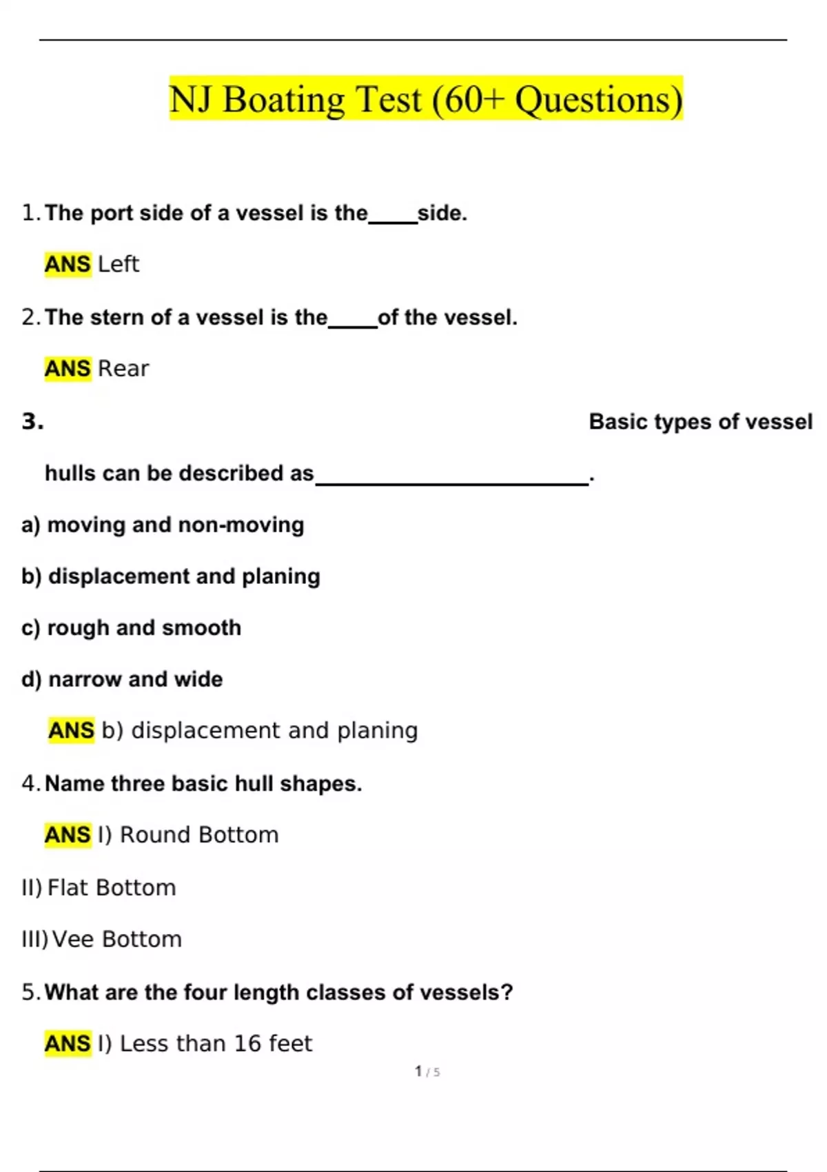 NJ Boating Test (60+ Questions) 2024 Questions & Answers Updated Correctly