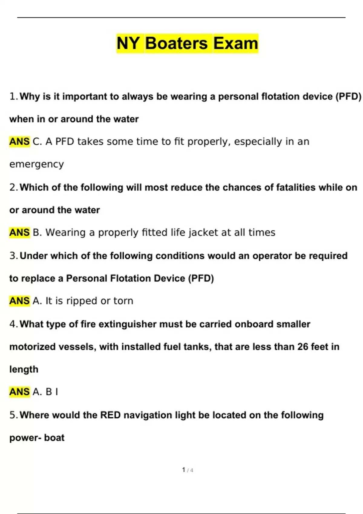 NJ-NY Boaters Exam Latest Update Graded A+