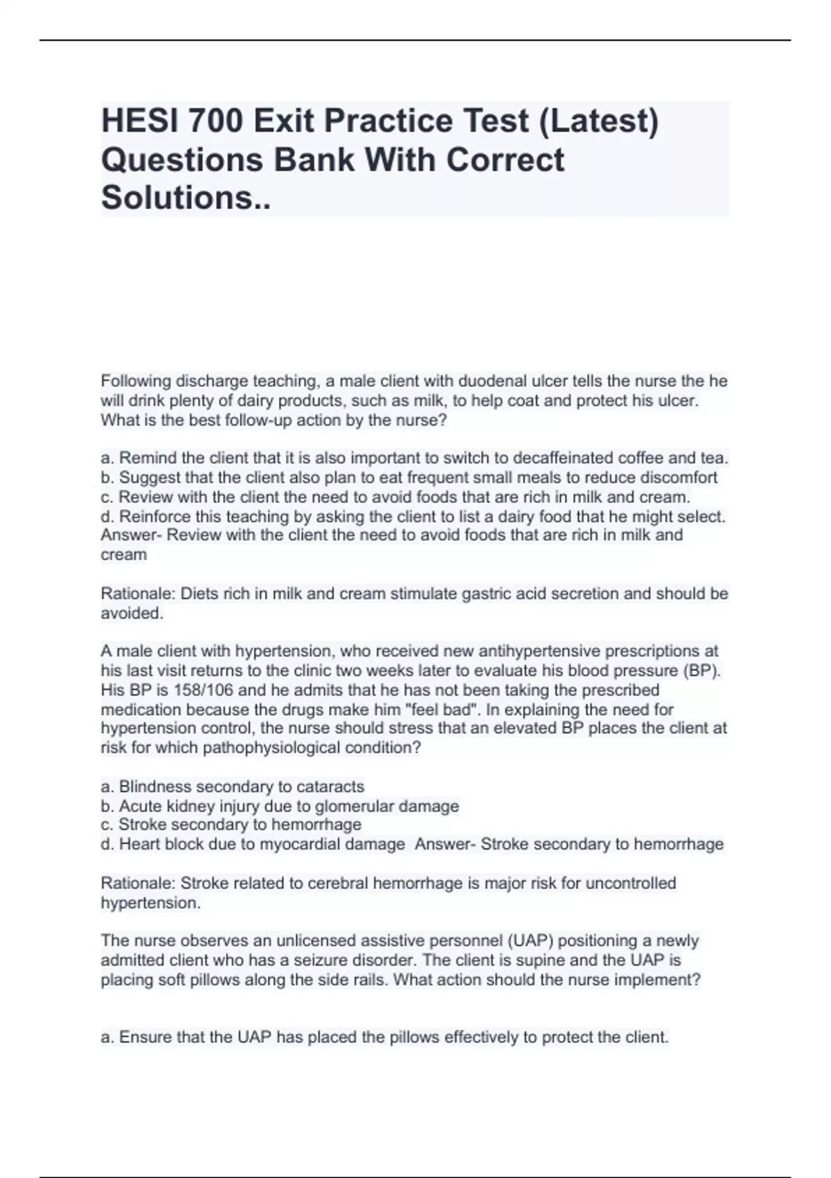 HESI 700 Exit Practice Test (Latest) Questions Bank With Correct Solutions..
