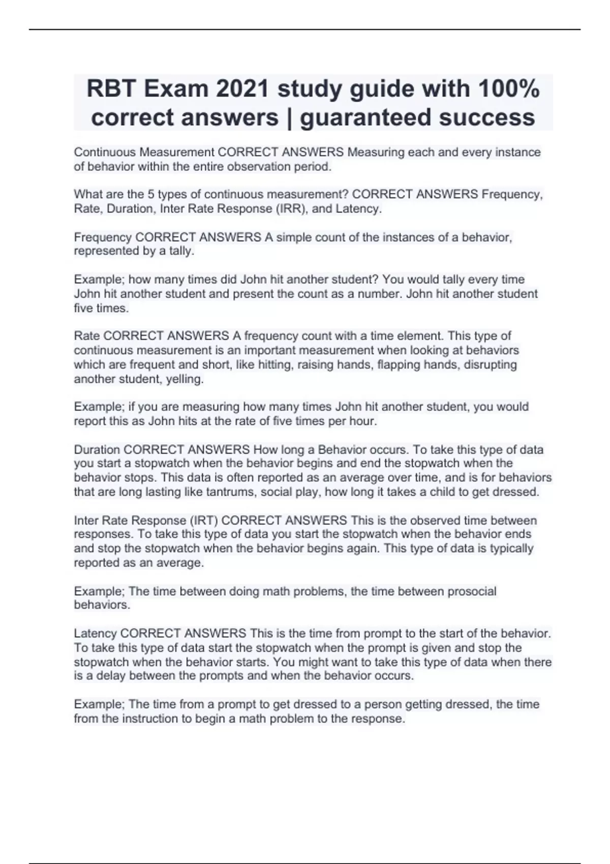 RBT Exam 2021 study guide with 100% correct answers | guaranteed success