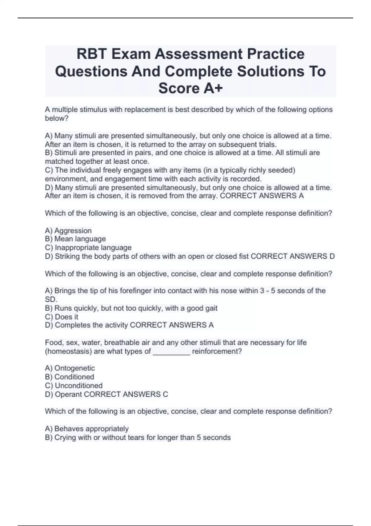 RBT Exam Questions And Answers With 100% Correct Answers (Package Deal)