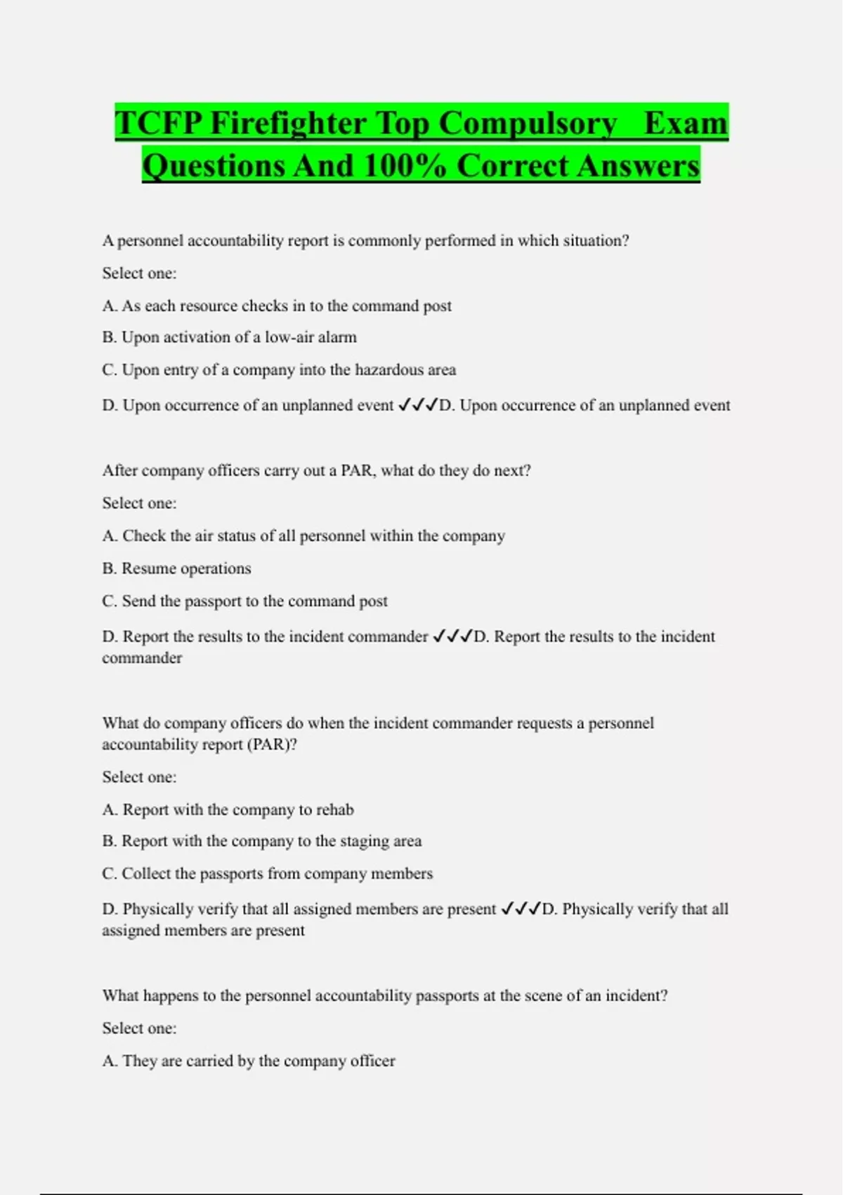 TCFP Firefighter Top Compulsory Exam Questions And 100% Correct Answers