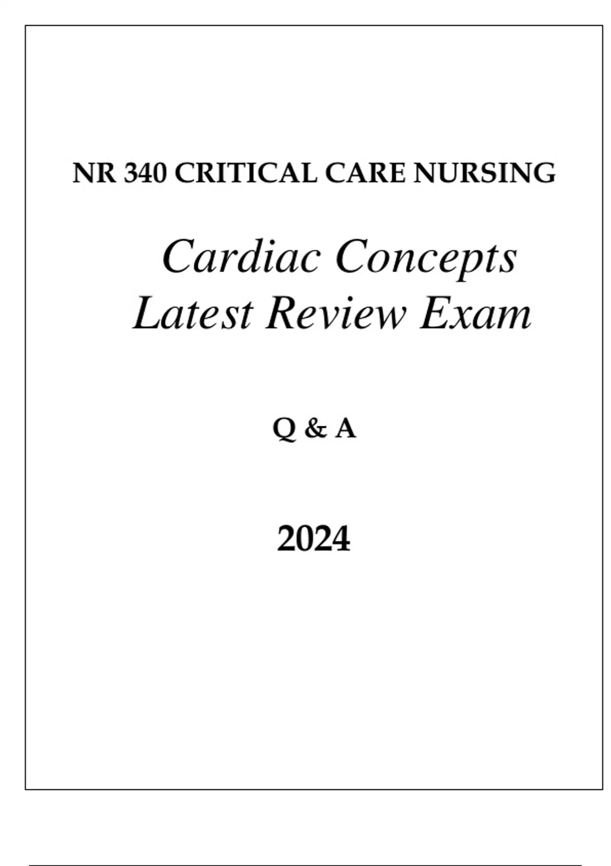 NR 340 CRITICAL CARE (CARDIAC CONCEPTS) LATEST REVIEW EXAM Q & A 2024NR 340 CRITICAL CARE (CARDIAC CONCEPTS) LATEST REVIEW EXAM Q & A 2024NR 340 CRITICAL CARE (CARDIAC CONCEPTS) LATEST REVIEW EXAM Q & A 2024
