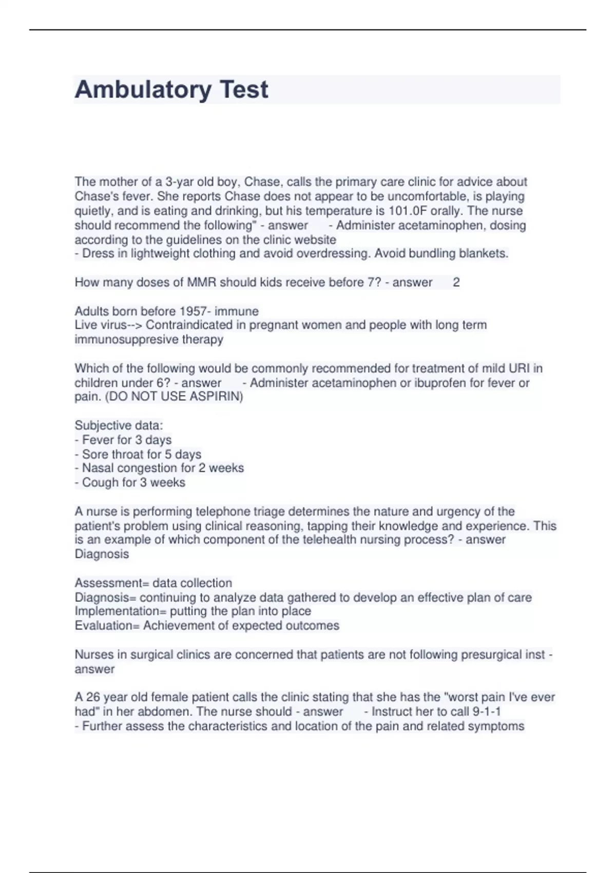 Ambulatory Test Questions and Answers 100% Solved