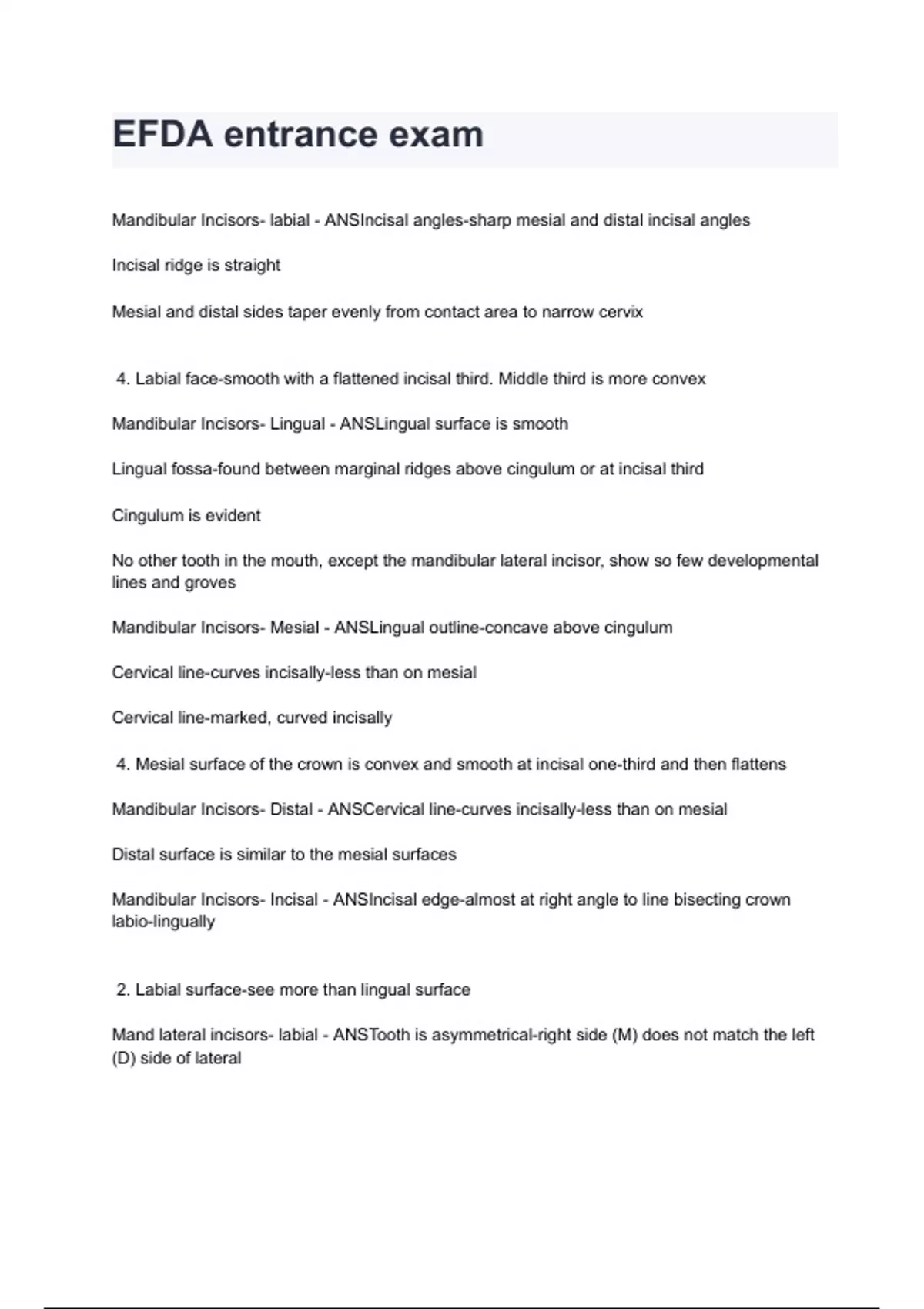 EFDA entrance exam 2024/2025 (100% verified) graded A+ by experts