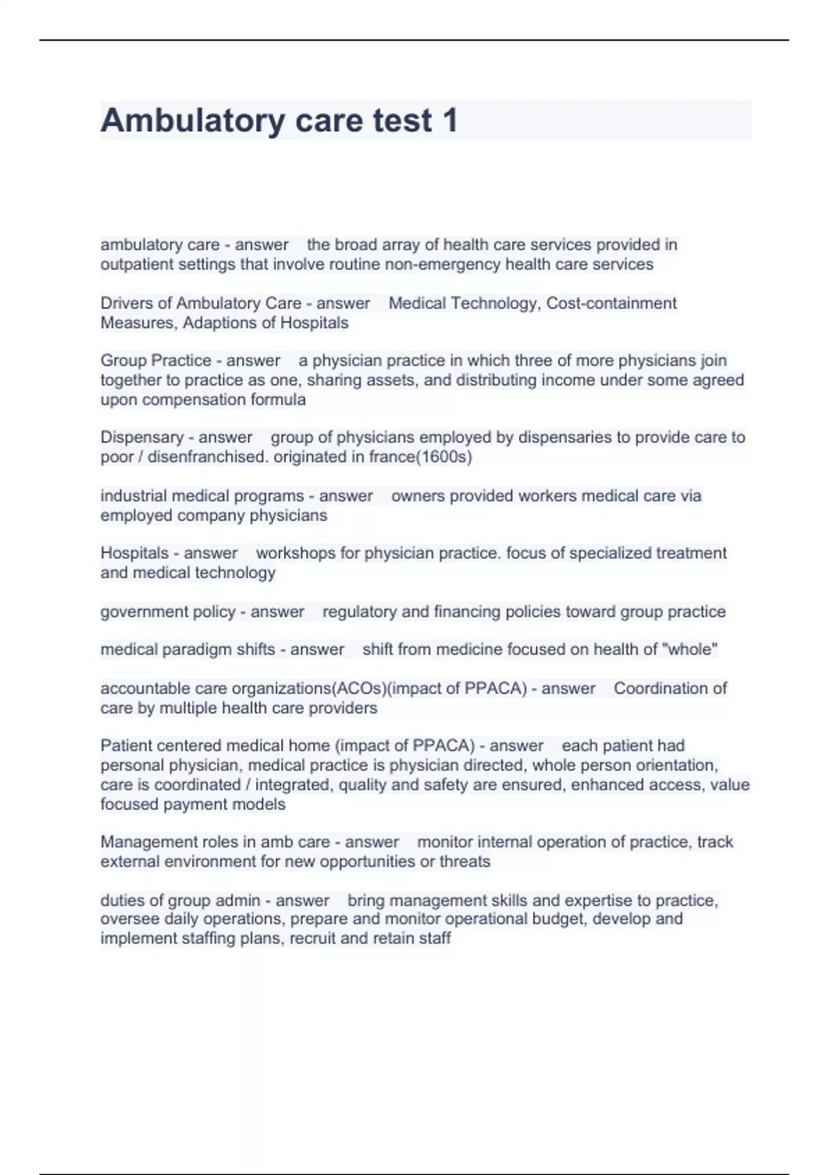 Ambulatory care test 1