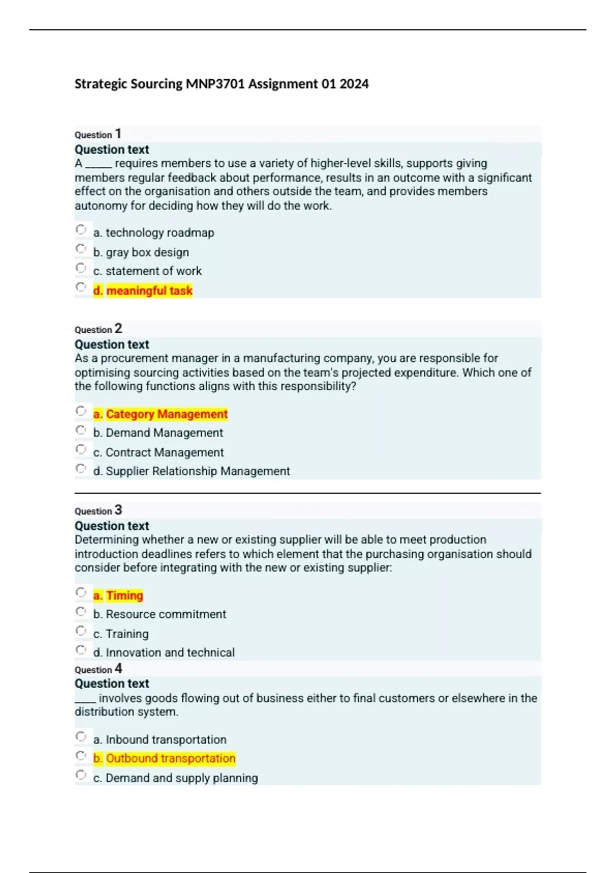 Strategic Sourcing MNP3701 Assignment 01 2024