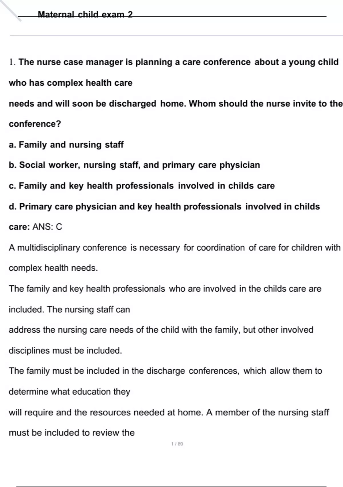 1. The nurse case manager is planning a care conference about a young child