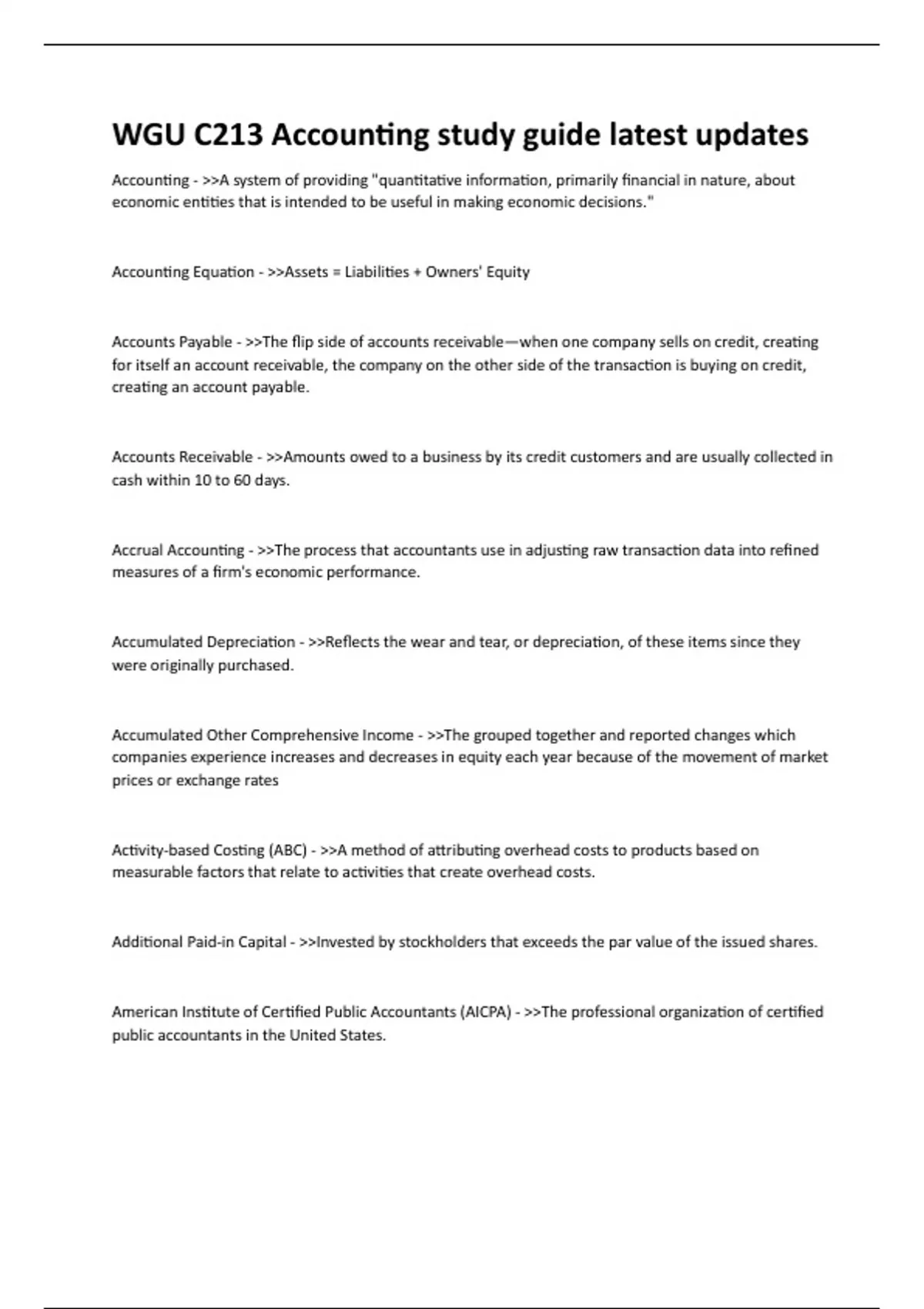 Summary WGU C213 Accounting study guide latest updates