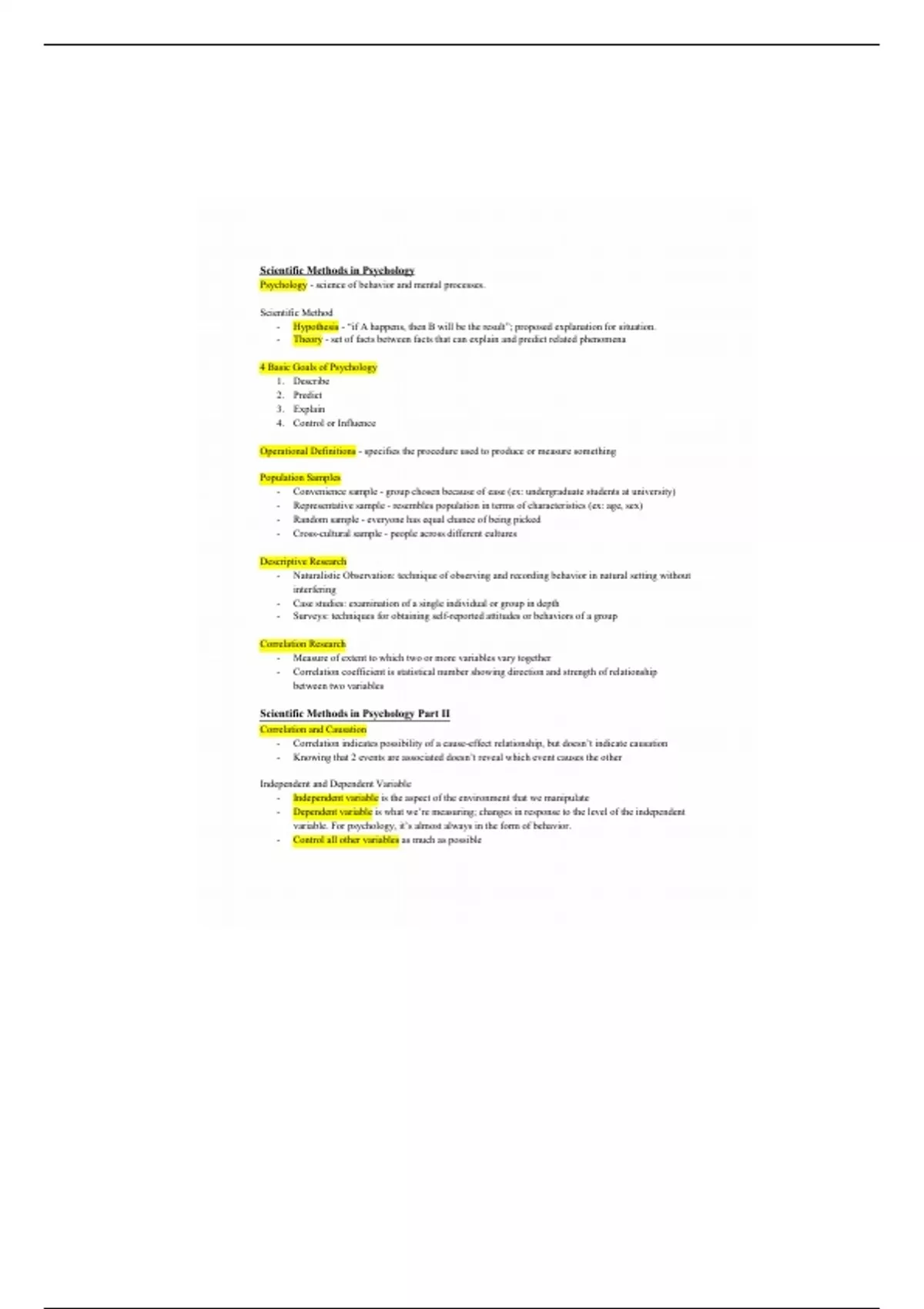 This is a comprehensive and detailed note for Psy 100 with focus on; Scientific methods in psychology. U'll need it!!