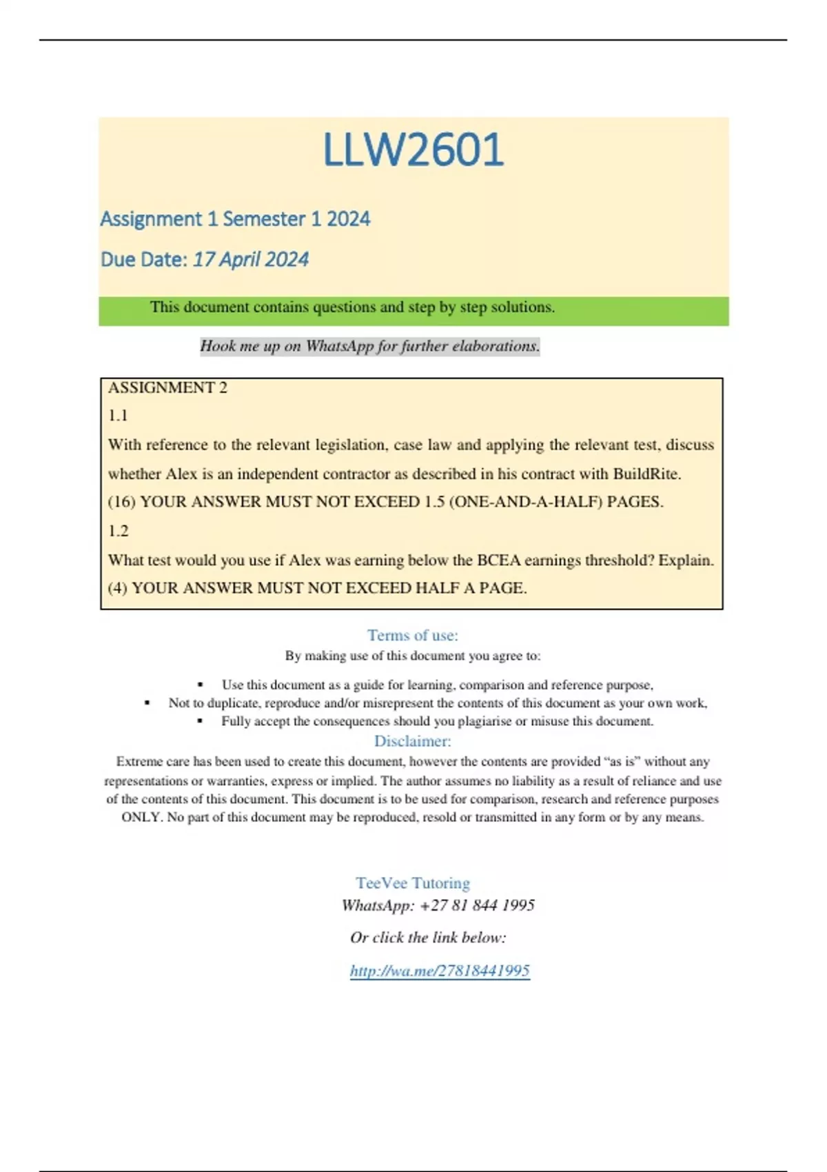 Hook me up on WhatsApp for further elaborations.