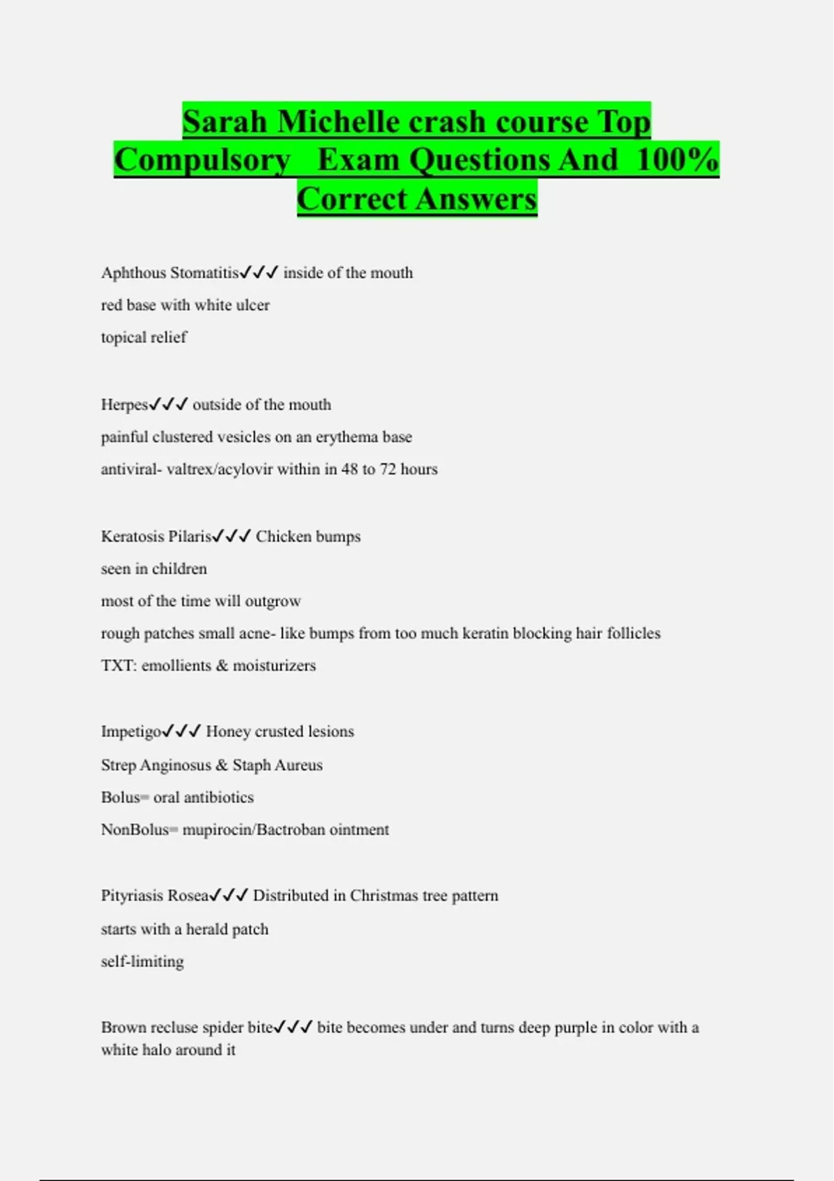 Sarah Michelle crash course Top Compulsory Exam Questions And 100% Correct Answers